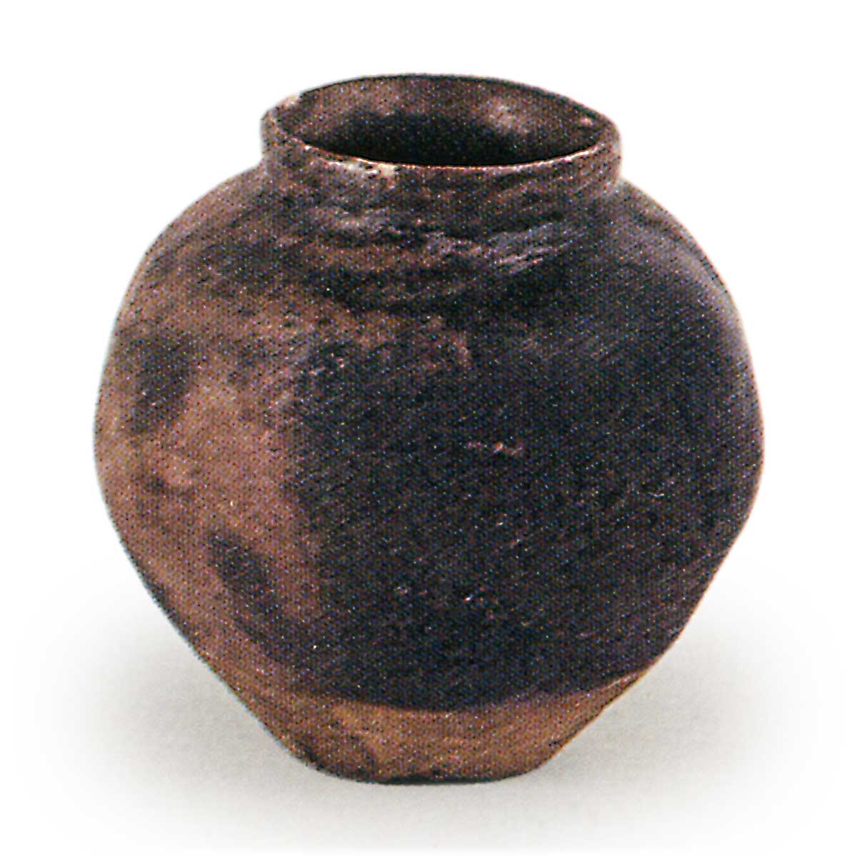 瀬戸铁釉小壺 日本瀬戸铁釉小壺 2025.01.26 瀬戸铁釉小壺 爱知县濑户市马笼町出土14世纪 高4.8厘米,直径2.5厘米,器身直径4.9厘米,底座直径1.9厘米爱知县陶瓷博物馆马笼窑是濑户地区为数不多的出土窑之一,在镰仓时代末期小濑户时期达到鼎盛,烧制了种类繁多的器皿。 除了早期的天目茶碗,这个窑还生产了许多小罐和小壶。其中许多形状与上图所示的圆形茶罐相似,但这里展示的是高而窄的罐子,肩部略微鼓起,形状与文琳型相似。它由含铁量高的粘土制成,且罐壁较薄。铁釉很厚,颜色呈棕色,类似于铁锈的颜色。
