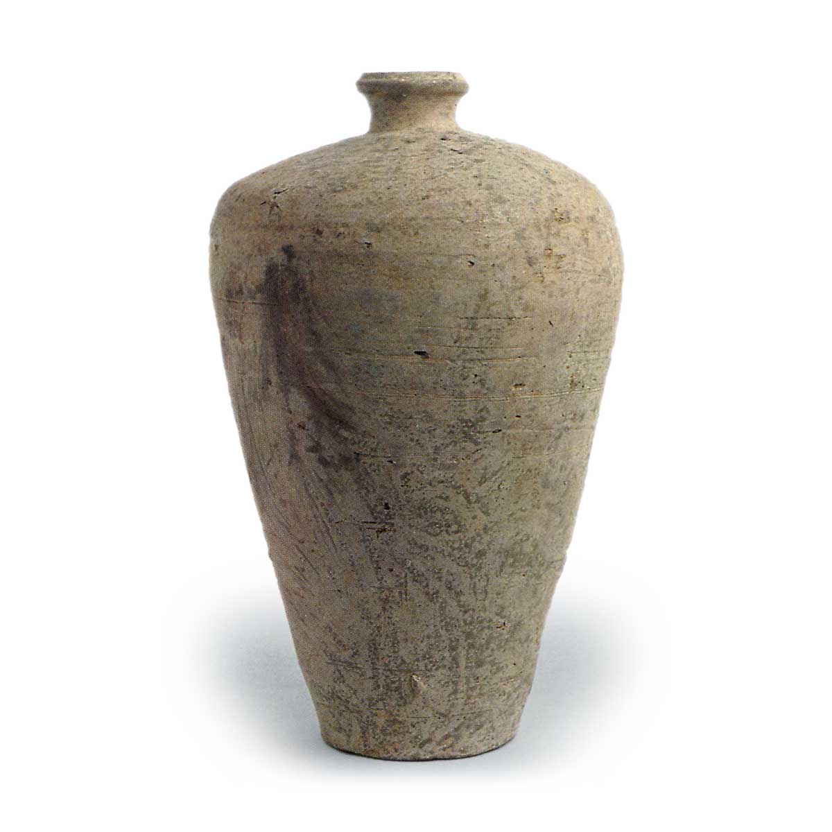 瀬戸灰釉瓶 日本瀬戸灰釉瓶 2025.02.10 瀬戸灰釉瓶 出土于滋贺县蒲生郡日野町日野大谷遗址13世纪高27.8厘米,直径4.0厘米,器身直径17.0厘米,底座直径8.0厘米日野町教育委员会这是两种早期小濑户朝来烧器皿中的一种直形器皿,也被用作陪葬品。这种器皿肩部宽厚,长而直,与作为其原型的中国陶瓷非常相似,是此类器皿中最古老的类型之一。它采用人土辗压法制作,器皿表面被磨平。灰釉是一种单色釉,用毛刷涂抹不均,形成薄薄的一层。