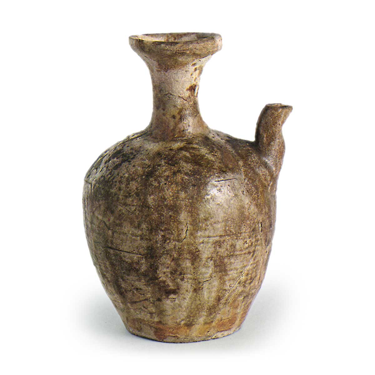 瀬戸灰釉水壶 日本瀬戸灰釉水壶 2025.02.24 瀬戸灰釉水壶 13世纪高17.3厘米,直径5.4厘米,器身直径11.3厘米,底座直径6.5厘米这是一只平底水壶,壶嘴较窄,是科塞托最古老的水壶之一,因为它还没有把手。它由略带粗糙的灰白色粘土制成,用绳状粘土盘绕成形。灰釉薄薄地刷在整个表面,但底部已经变得浑浊,灰釉已经融化并流到上面。这可能是由于它没有与长石完全融合。