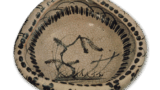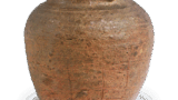 瀬戸铁釉印花花卉花瓶 日本瀬戸铁釉印花花卉花瓶 2025.02.24 瀬戸铁釉印花花卉花瓶 爱知县濑户市窯元町百目窯出土14世纪 高18.5厘米,直径5.5厘米,瓶身直径7.2厘米,底座直径6.6厘米本田收藏这是一只典型的佛教花瓶,瓶口狭长,属于旧式风格,瓶底高而圆润。瓶身四侧以凹雕工艺装饰着牡丹花纹。铁釉中灰分含量高,色调为蓝黑色。这件作品创作于13世纪中叶。