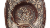 瀬戸铁釉印花花卉花瓶 日本瀬戸铁釉印花花卉花瓶 2025.02.24 瀬戸铁釉印花花卉花瓶 14世纪高22.0厘米,直径6.0厘米,瓶身直径7.7厘米,底部直径6.2厘米瓶口略不寻常,从瓶口三分之一处像喇叭一样张开。瓶身是圆形的,但高度较小,显得单薄。瓶颈底部有一条凸起的带子。瓶身缝有花瓣形图案,上下相对。