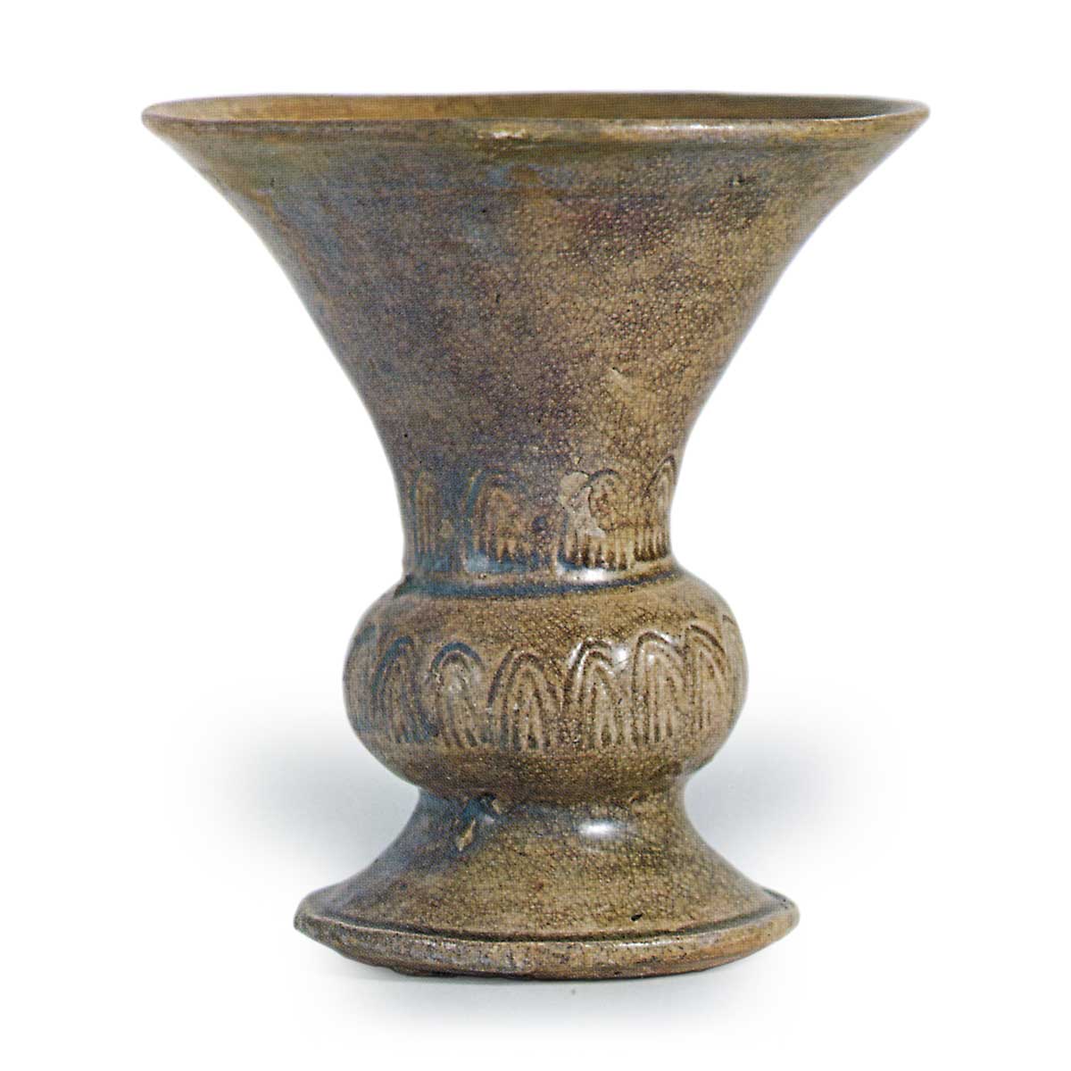 瀬戸灰釉花卉纹花瓶 日本瀬戸灰釉花卉纹花瓶 2025.02.25 瀬戸灰釉花卉纹花瓶 出土于爱知县濑户市东山路町山路西窑。15 世纪高 16.6 厘米,口径 15.3 厘米,身径 8.2 厘米,底径 10.1 厘米。 瓶颈极为开阔,如此夸张的造型实属罕见,这可能是尊式花瓶早期造型的标志。 瓶口底部有 11 个小花瓣状纹饰,瓶身有 18 个。 白灰釉的颜色略有减弱,呈闪亮的绿色,有些地方还有钴色的变化。 这是早期尊式花瓶中最精美的一件。