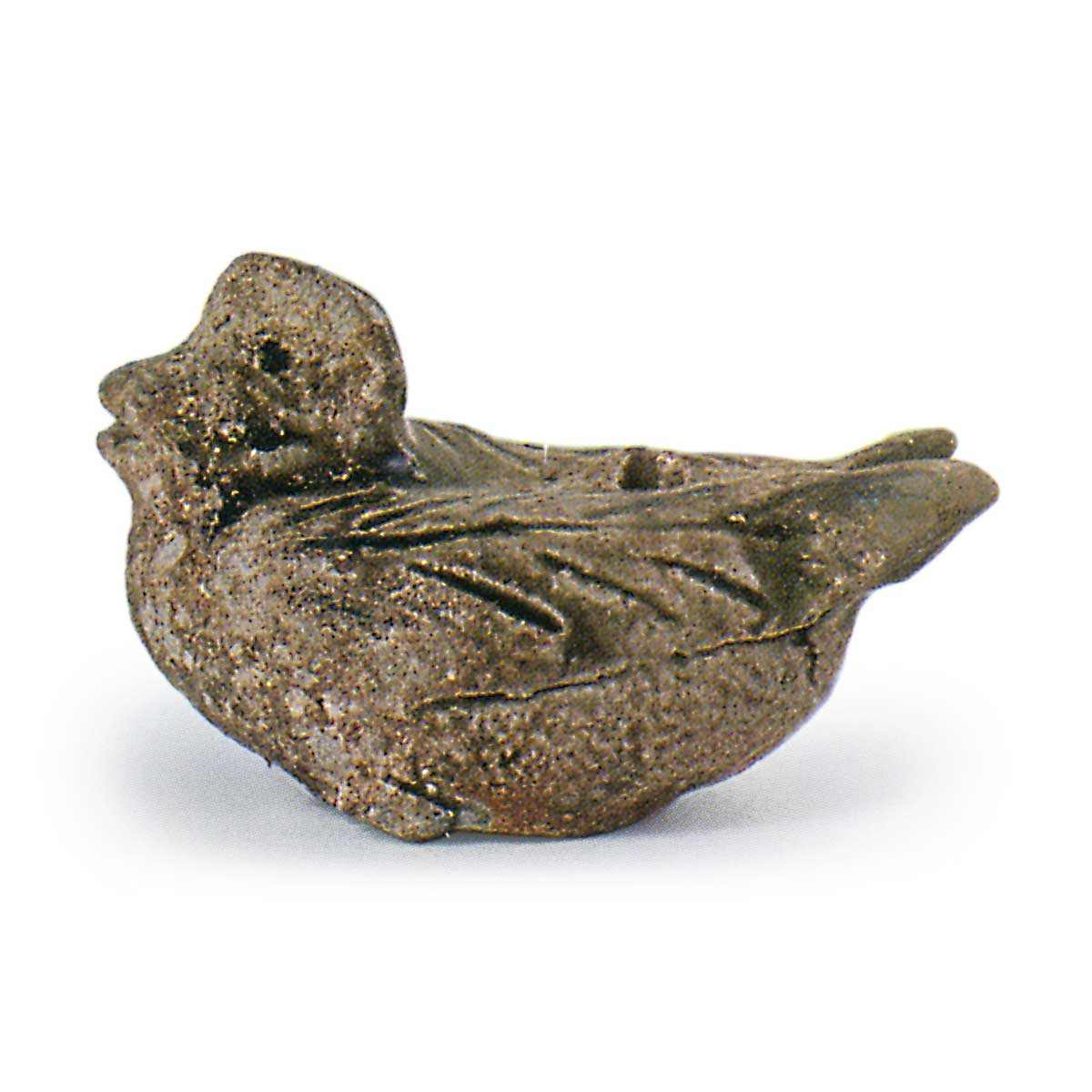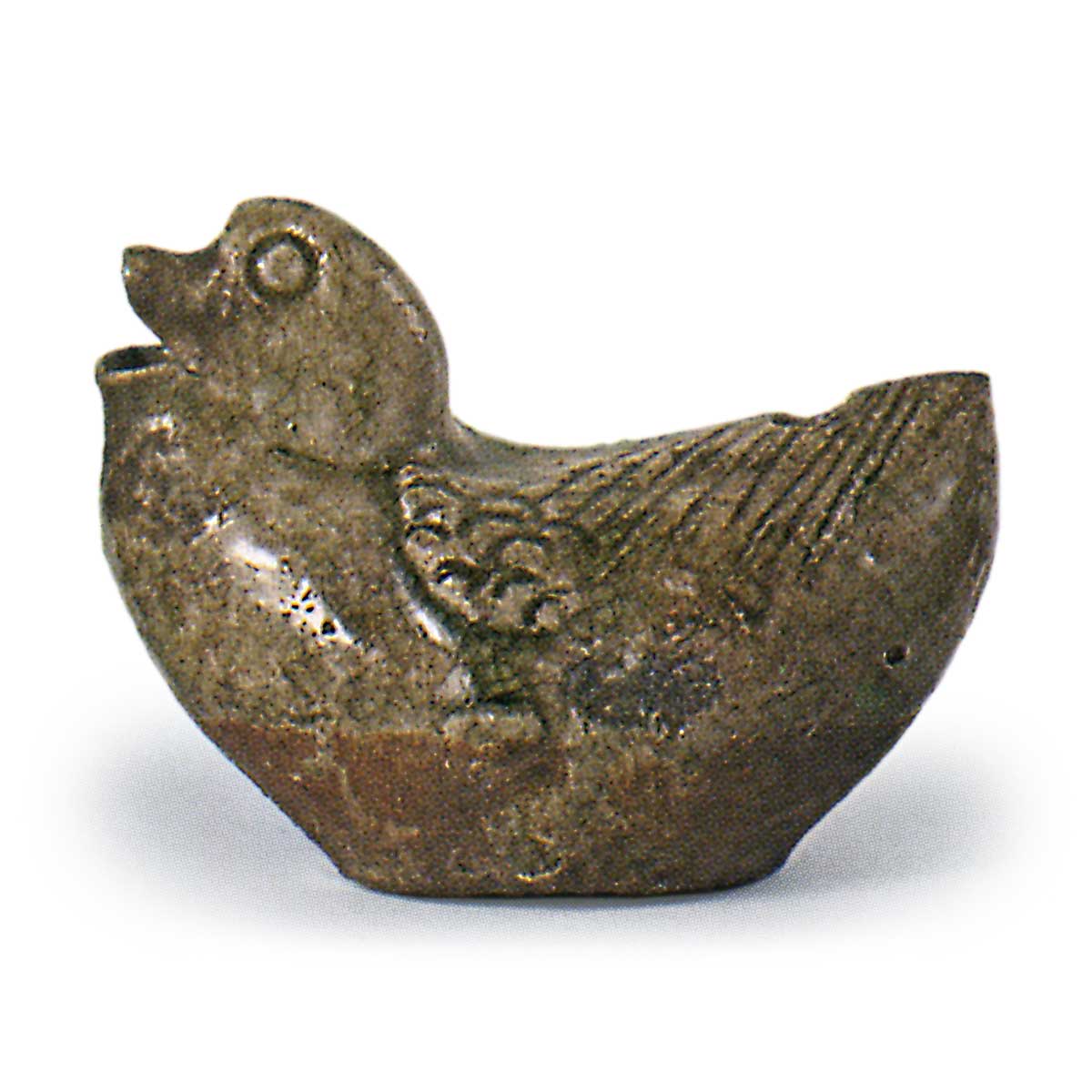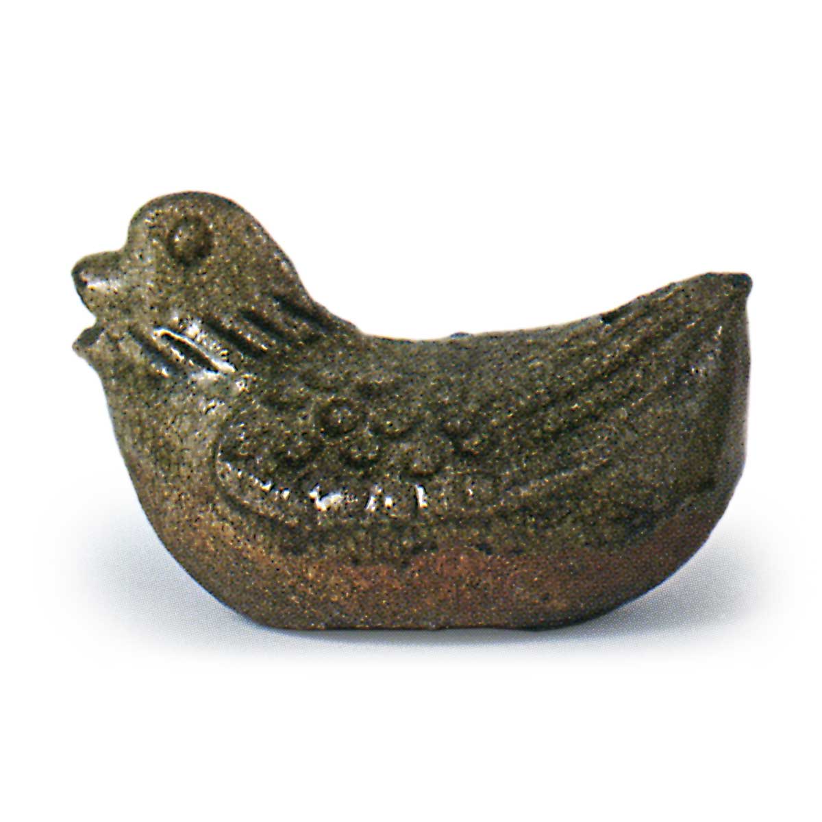 瀬戸灰釉鸟形水滴 日本瀬戸灰釉鸟形水滴 2025.02.25 瀬戸灰釉鸟形水滴 瀬戸灰釉鸟形水滴 瀬戸灰釉鸟形水滴 14 世纪高(中)5.3 厘米。 这些鸟形水滴制作成一个小碗的形状,上边缘折叠,顶部粘贴粘土以表现羽毛,采用inka-hana 技术制作,非常精美。 这是珂罗版象牙中最可爱的一件。