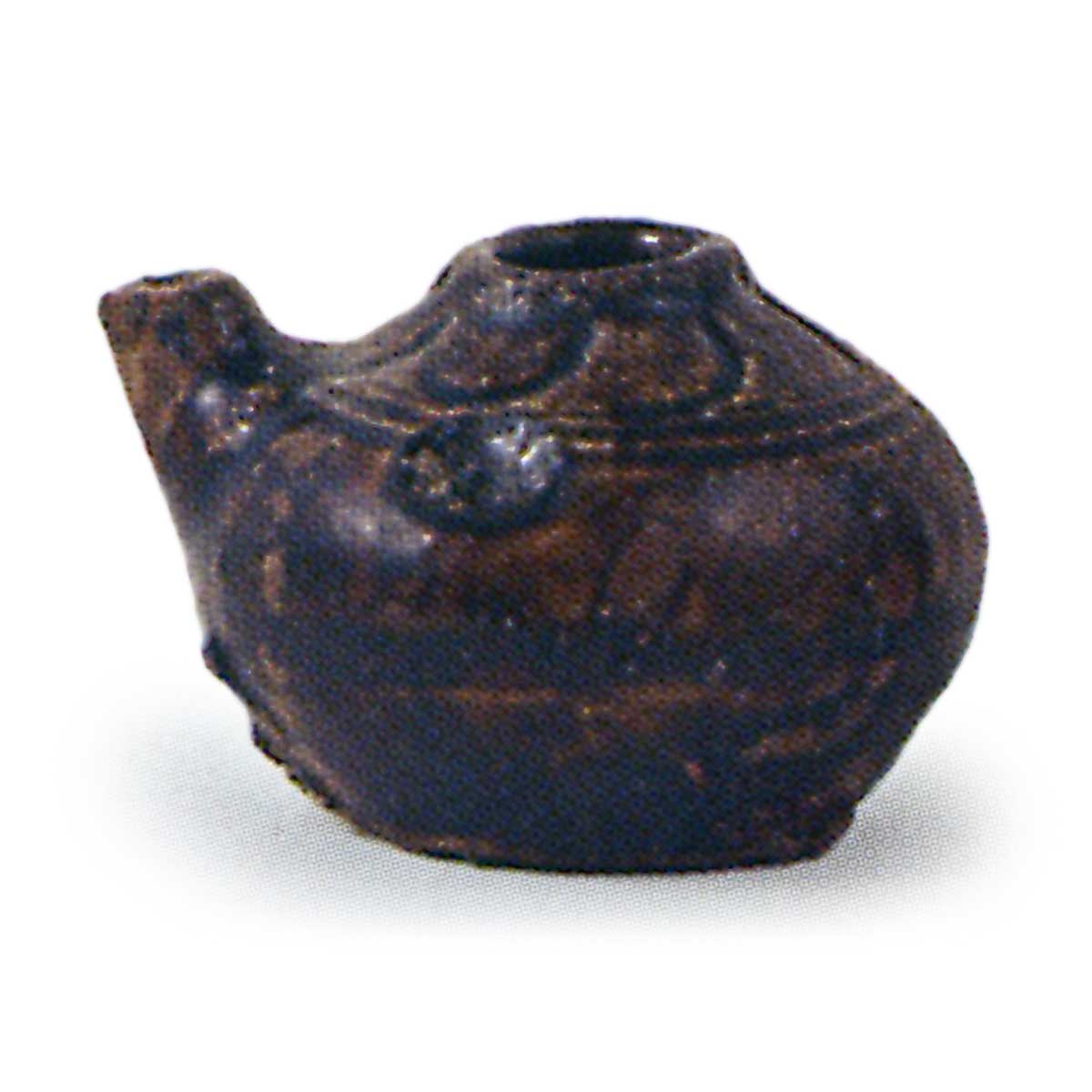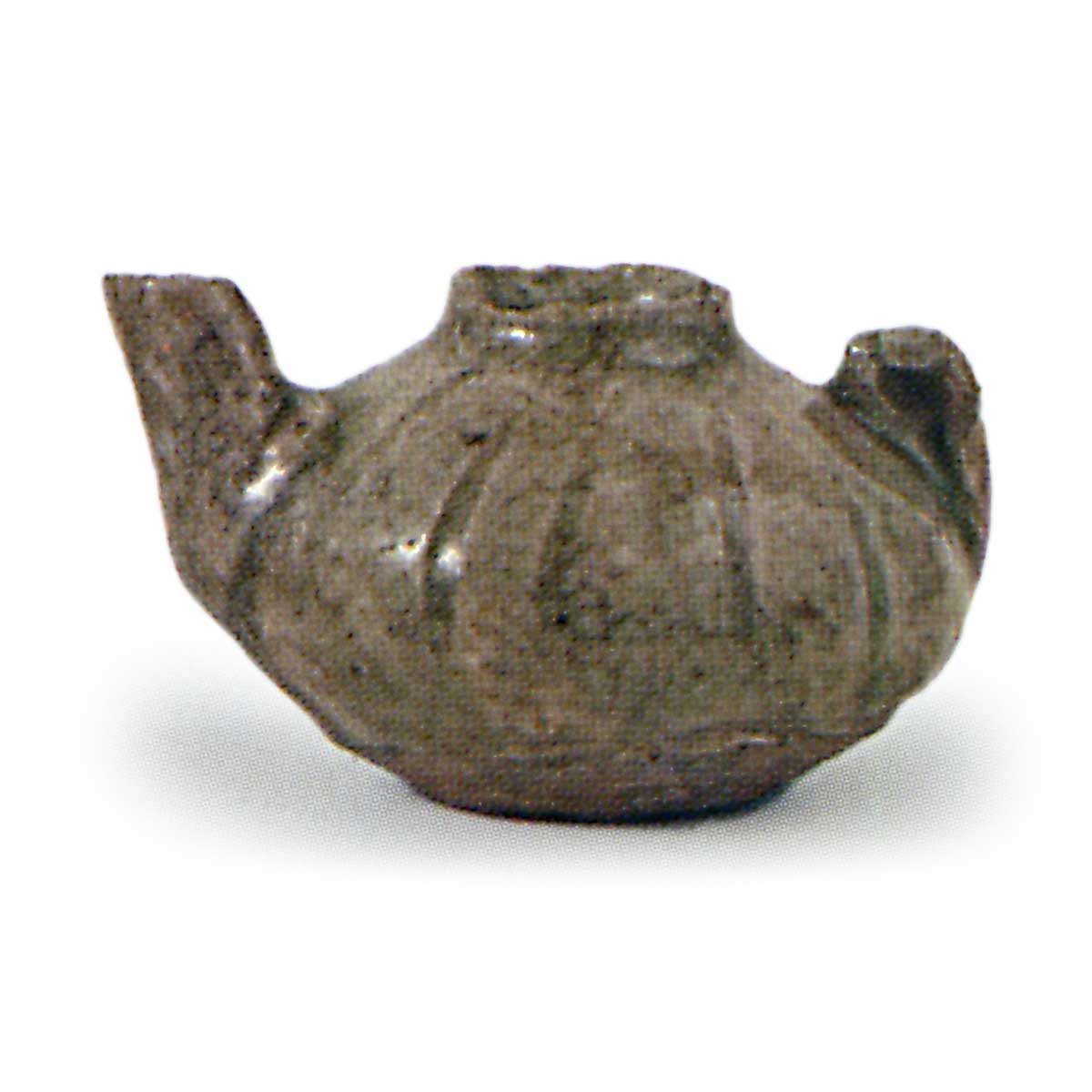 瀬戸灰铁釉水滴 日本瀬戸灰铁釉水滴 X Facebook Hatena Bookmark LINE Pinterest 复制 2025.02.25 瀬戸灰铁釉水滴 14 世纪(左),高 2.9 厘米,口径 1.3 厘米,底径 2.8 厘米。 水滴不带盖。 壶把有多种类型,如简单粘贴的泥板、带状环形壶把和猴形壶把。 很多壶身上都有图案,有的只有眼纹,有的有印章和花纹等等。