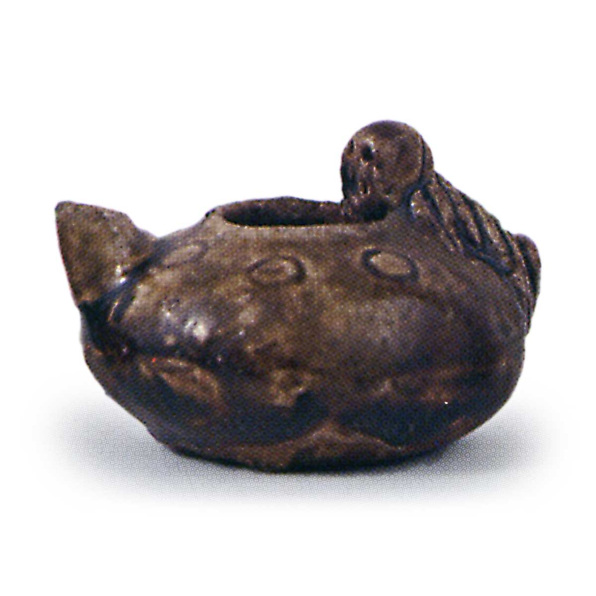 瀬戸铁釉水滴 日本瀬戸铁釉水滴 2025.02.25 瀬戸铁釉水滴 14 世纪。(右图)高 2.6 厘米,口径 2.1 厘米,底径 2.6 厘米。 自平安时代末期(794-1192 年)以来,山下窑一直在生产类似的小液滴,但大部分窑变器都是在镰仓时代末期(1192-1333 年)至南武町时代(1392-1333 年)生产的,这种类型的器物数量巨大。 不过,考虑到室町时代(1336-1573 年)产量锐减,很难说它们只是文具。