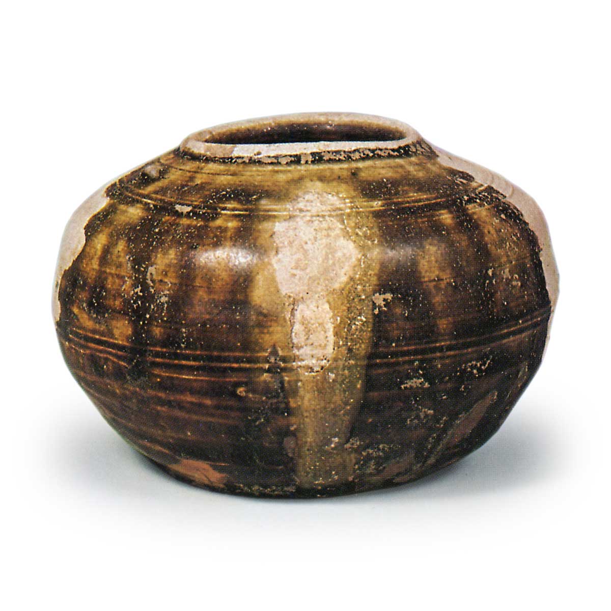 瀬戸铁釉小花瓶 日本瀬戸铁釉小花瓶 2025.02.25 瀬戸铁釉小花瓶 出土于神奈川县镰仓的护国寺院内。14 世纪。高 7.6 厘米、口径 4.5 厘米、身径 10.5 厘米、底径 6.5 厘米。重要文化遗产五乐寺 从造型上看,这可能是一只甲鱼,但它的体型对于甲鱼来说非常大。 它的口部也很低。 肩部和眼窝线傲然挺立。 铁釉是一种棕褐色的粉釉,有许多不规则的地方,在器身的一部分可以看到黄绿色的流纹。