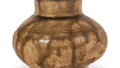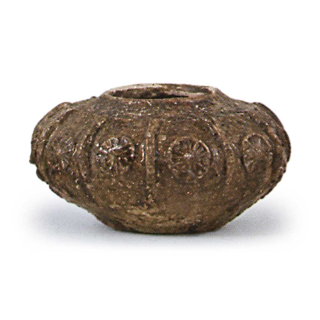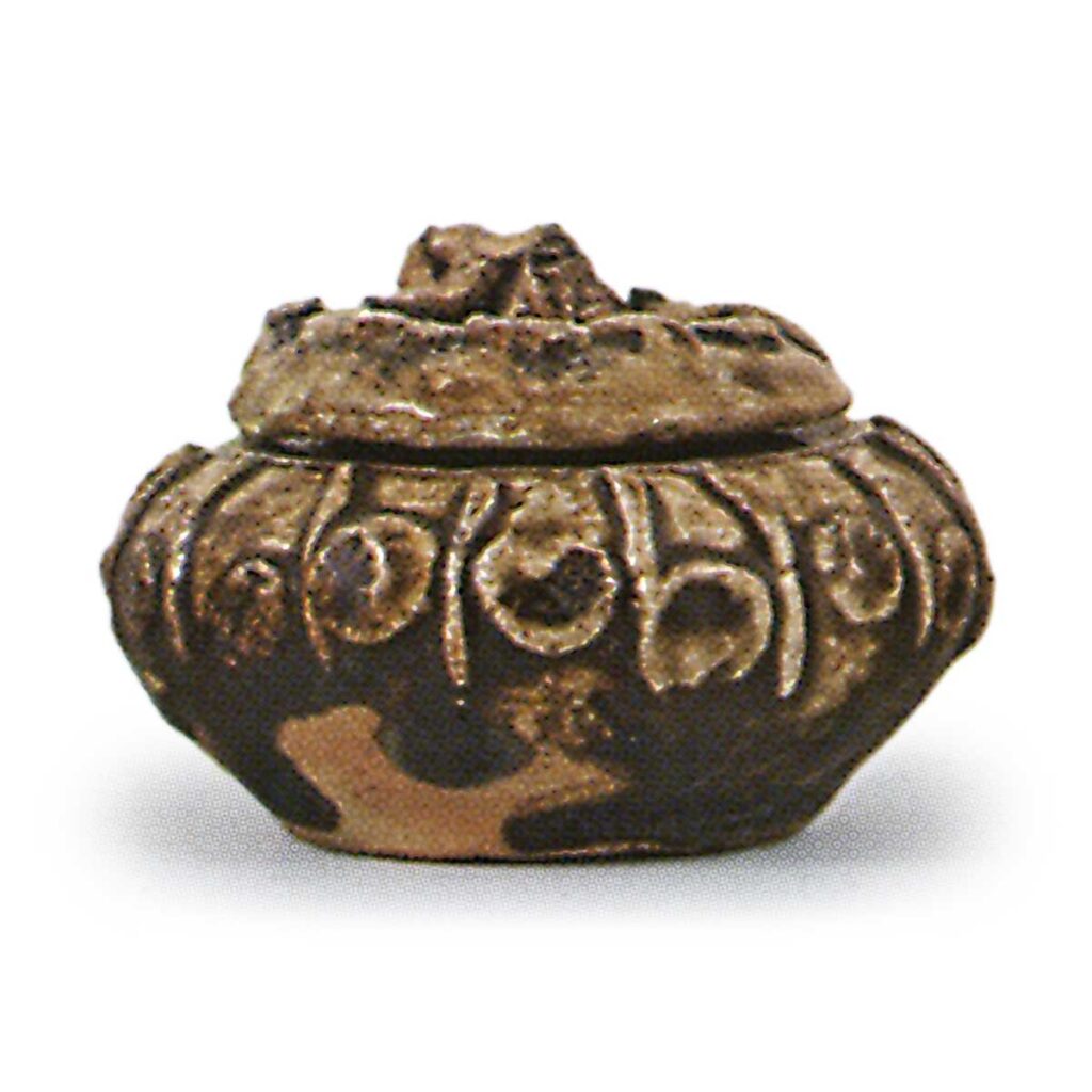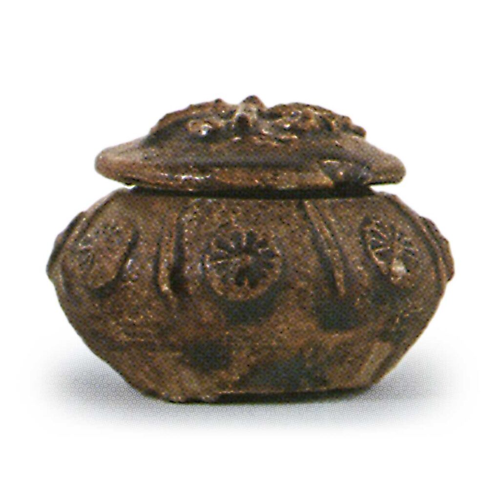 瀬戸铁釉容器 容器瀬戸铁釉容器 X Facebook Hatena Bookmark LINE Pinterest 复制 2025.02.25 瀬戸铁釉容器 14 世纪。(左)高 4.5 厘米,口径 4.4 厘米,身径 8.4 厘米,底径 5.0 厘米。 这些五子在早期是灰釉小器,但从镰仓时代后期到南北武昌时代,灰釉和铁釉器都被使用,南北武昌时代的许多带有花卉图案的大器都是铁釉器。 这些枸杞的用途尚不清楚。