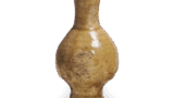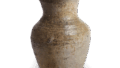 早期的东名陶瓷器最接近上一代佐纳吉窑灰釉陶器的传统。 最具代表性的例子就是这件水罐。 虽然细直的颈部和底座已经消失,罐身也被平底所取代,但椭圆形的罐身和紧绷的肩部与奈良时代末期以后的水瓶外观非常一致。