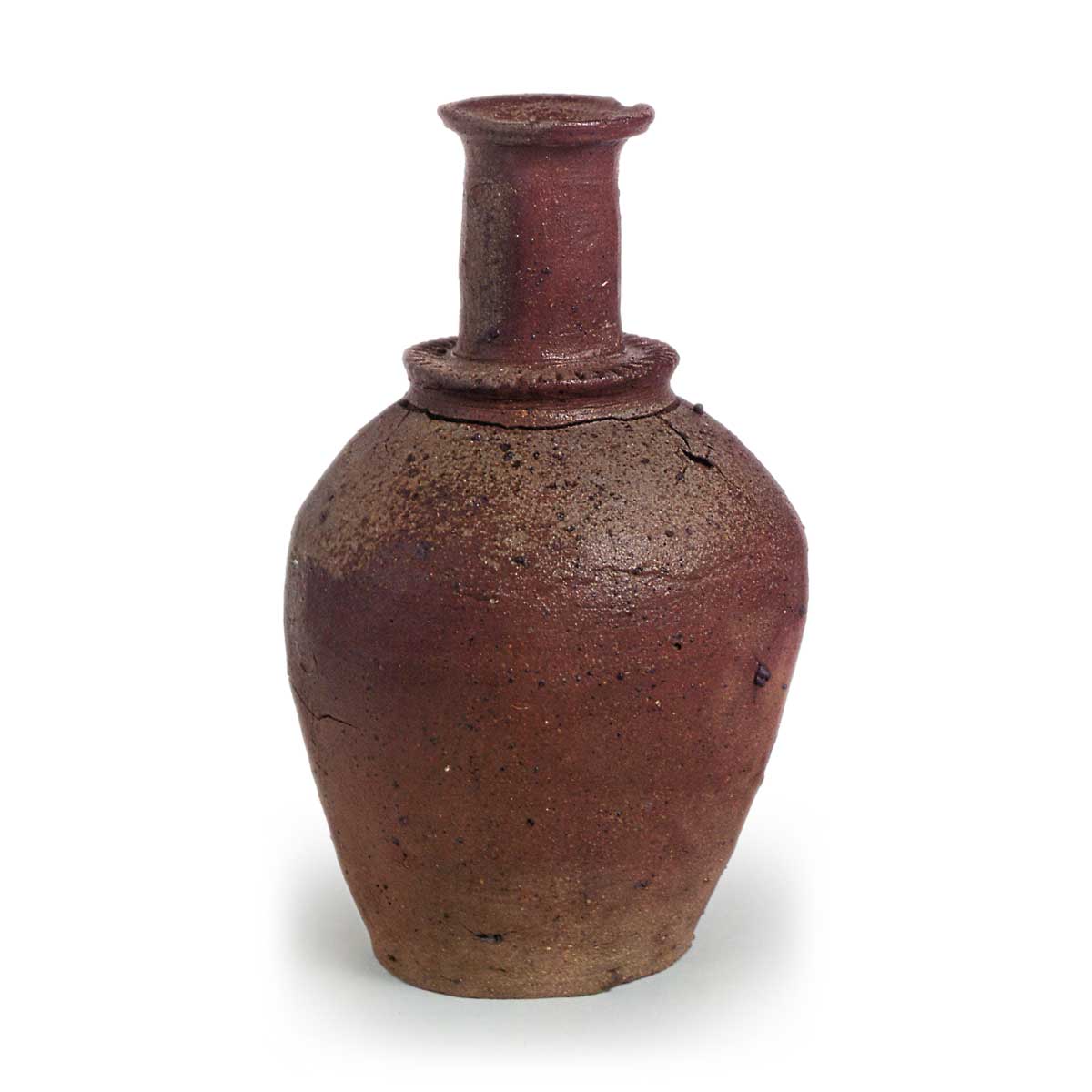 常滑水瓶 常滑渥美猿投常滑水瓶 2025.03.05 常滑水瓶 出土于爱知县知多郡内海町今泽。十三世纪。高 26.4 厘米、口径 6.7 厘米、身径 16.1 厘米、底径 9.9 厘米爱知县陶瓷博物馆 自奈良时代以来,水罐一直是佛教的主要器皿之一。 到了中世纪,虽然底座已经遗失,但其基本形式没有改变,各地都有制作。 在东名,镰仓时代(1192-1333 年)口颈变得更粗,器身变得更臃肿,颈肩交界处的突出带也变得更加夸张。 这件水盂的带状突起特别大,上表面有放射状切口。 这件水瓶具有非常类似于东名的特征。