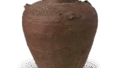 常滑四耳壶 常滑渥美猿投常滑四耳壶 2025.03.05 常滑四耳壶 14 世纪。高 21.3 厘米、口径 10.0 厘米、身径 18.0 厘米、底径 7.0 厘米。常滑市陶瓷艺术研究所 小宗名的四明罐并不多。 其基本形状是三足罐等小罐的形状,并非直接模仿濑户四明罐。 他们很可能只是学会了如何添加横耳。 器底是粗糙的灰黑色粘土,卷起后模压成型,通过刮削器身调整器物表面。 器物烧制相对较好,肩部有黄绿色的天然釉,呈芝麻状花纹。