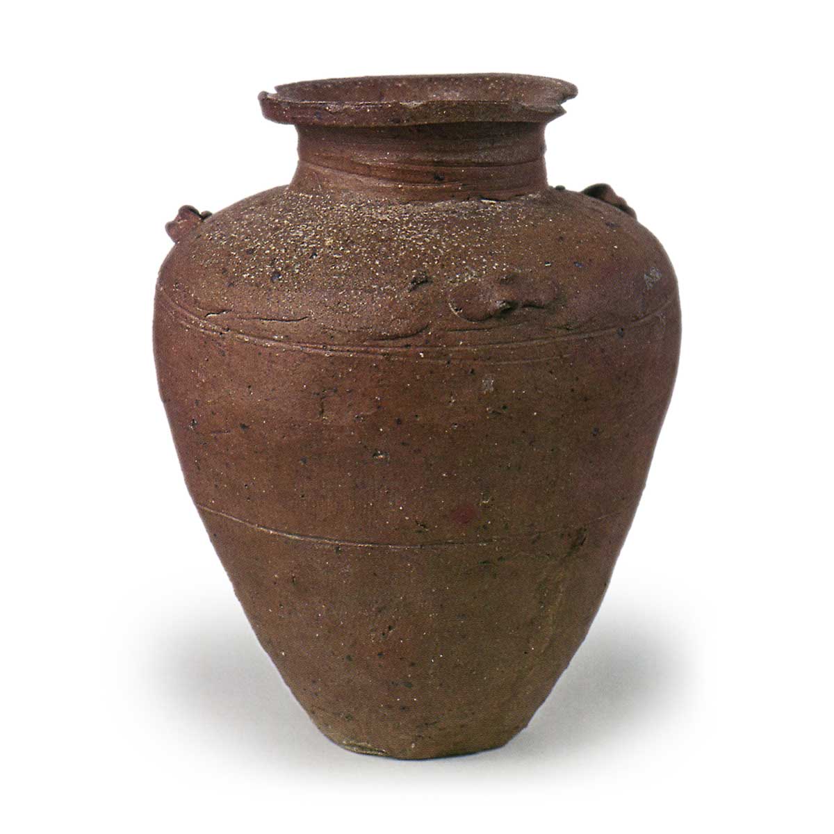 常滑三耳壶 常滑渥美猿投常滑三耳壶 2025.03.05 常滑三耳壶 13 世纪。高 24.0 厘米,口径 11.8 厘米,身径 19.3-19.8 厘米,底径 8.0 厘米。 这件小罐的基本造型与三足罐相似,罐身周围有两条下沉线。 肩部有三个侧耳。 三耳罐在小宗名很常见,但有耳的小罐则相对少见。 据推测,它制作于 13 世纪中叶。