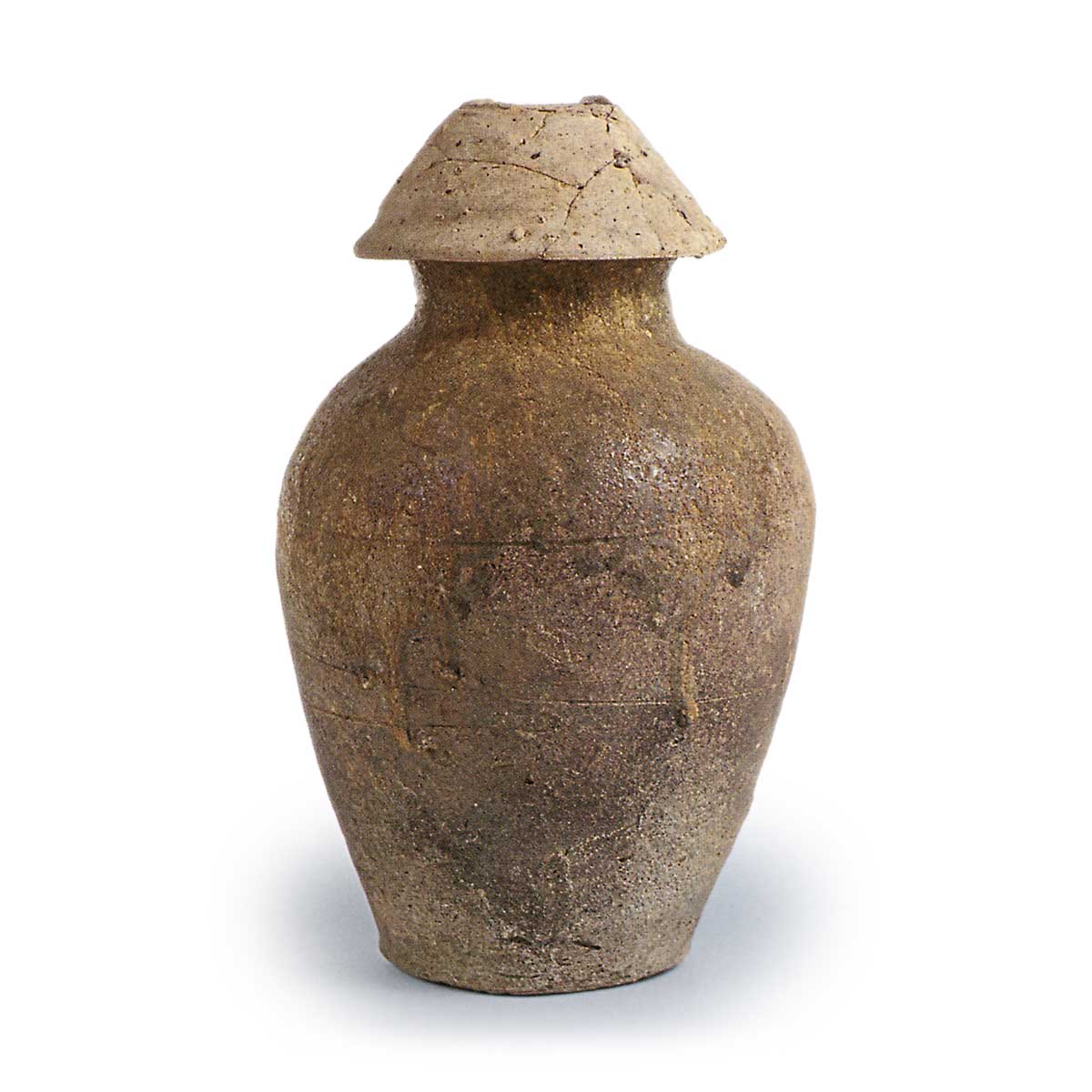 这是作为仓库骨器使用的东名三足罐的最佳范例之一。 其造型退化,口颈细长,身形修长,肩部无张力,器身省略了下沉线,形成两条线。 碗壁虽薄,却很厚实。 盖子使用的山茶碗出自东名,但它是一个深碗,没有鼓起,底座退化,显示了镰仓时代末期到南福町时代的风格。 它是了解三股罐终端形式的良好资料。