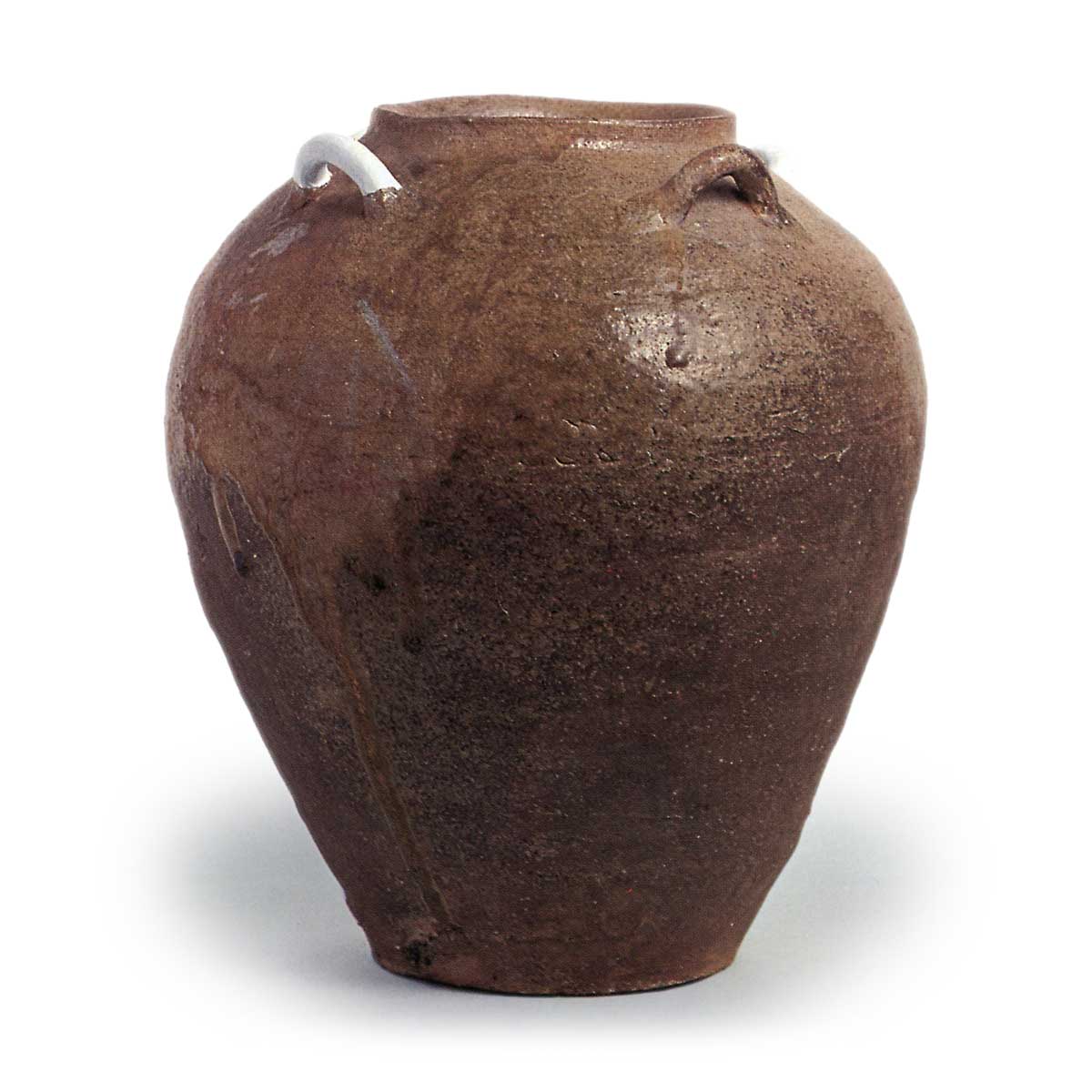 常滑四耳壶 常滑渥美猿投常滑四耳壶 2025.03.05 常滑四耳壶 出土于滋贺县大津市比叡山横川。十二世纪。高 34.0 厘米、口径 13.2-14.3 厘米、身径 28.4 厘米、底径 13.6 厘米。圆乐寺宝物馆 此花瓶是 1965 年 9 月第 24 号台风期间,从倒塌在根元娘娘堂旧址的一棵大树上挖掘出来的。 它是一个长身、平底、短颈的罐子,有四个环形侧耳,这在这种类型的罐子中并不多见。 粘土呈棕色,含铁量较高,表面因烟熏烧制而碳化变黑。 天然釉从肩部向罐身一侧大量流淌,但受器物表皮色调的影响,呈现出深绿色。
