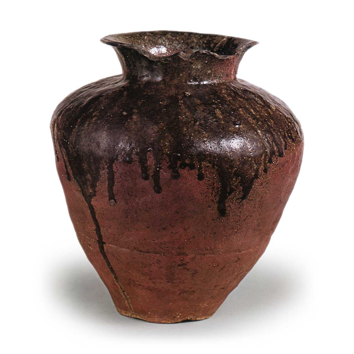 常滑罐 常滑渥美猿投常滑罐 2025.03.06 常滑罐 出土于三重县伊势郡大须谷经文冢。十二世纪。高 36.0 厘米,口径 20.4 厘米,身径 32.8 厘米,底径 12.8 厘米。 这是典型的早期东名经文罐之一,与影尾枸杞一起出土于大杉谷经文冢。 这种中型罐原本是一种实用器皿,在很多地方都被用作盛放经筒的外容器,其中不乏制作精良者。 此器外观整洁,但遗憾的是口沿部分有文字,蓝黑色的灰釉顺着红褐色的器皮流淌,给人一种非常早期的东名气息。