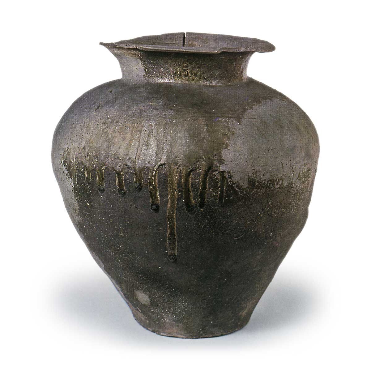 常滑罐 常滑渥美猿投常滑罐 X Facebook Hatena Bookmark LINE Pinterest 复制 2025.03.06 常滑罐 12 世纪。高 34.5 厘米、口径 22.0 厘米、身径 31.6 厘米、底径 13.0 厘米。常滑市陶瓷艺术研究所 这是东名最古老的中型罐之一。 罐子的颈部翘曲严重,边缘磨得很薄,露出锋利的边缘,颈部和肩部的连接处也很锋利。 罐身由三部分组成,以绳纹泥卷模连接。 由于还原烧制,器物表面呈灰黑色,但深绿色的天然釉从肩部一直流到器身,使其外观十分迷人。