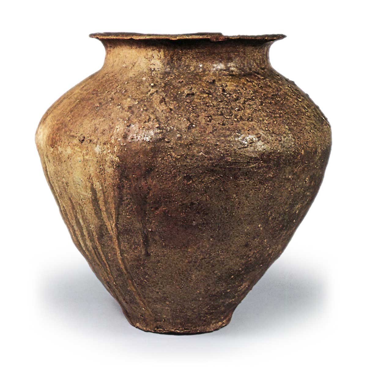 常滑罐 常滑渥美猿投常滑罐 2025.03.06 常滑罐 长野出土十二世纪。高 35.1 厘米、口径 20.0 厘米、身径 33.0 厘米、底径 12.6 厘米。爱知县陶瓷博物馆 这是平安时代东名经文罐的最佳范例之一。 此罐的罐身是卷泥体,罐身由三部分连接而成。 粘土是一种含铁量较高的致密粘土,烧制极为精良,罐身从罐膛到经氧化火烧制的棕褐色器表的一半处有深绿色的天然釉。
