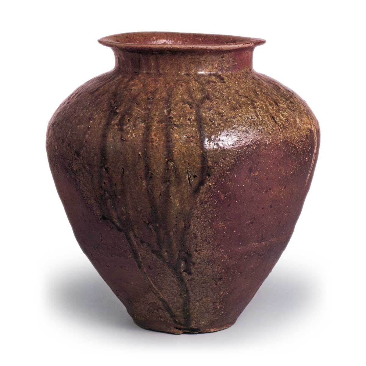 常滑罐 常滑渥美猿投常滑罐 2025.03.06 常滑罐 12 世纪。高 35.5 厘米,口直径 19.0 厘米,身直径 32.3 厘米,底直径 10.8 厘米。 这是属于 12 世纪晚期的中型罐之一。 口沿已开始出现轻微的边缘带。 粘土呈灰色,质地粗糙,罐身呈三层模制。 表面因还原烧制而呈灰黑色,从颈部到肩部的整个表面都覆盖着翠绿色的天然釉。