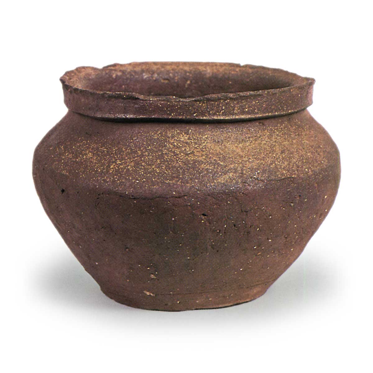 常滑罐 常滑渥美猿投常滑罐 2025.03.06 常滑罐 14 世纪。高 16.7 厘米、口径 18.8 厘米、身径 23.6 厘米、底径 12.5 厘米。一宫市教育委员会 这件器物出土于一宫市地区的仓库骨器。 器身呈扁平的算术球形,口沿带非常宽。 它由含有细长石颗粒的略粗粘土制成,用氧化铁烧成,器表呈棕褐色,表面覆盖着黄绿色的天然釉,釉面上有芝麻状的花纹。
