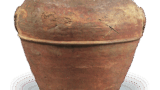 这个罐子是 1921 年从梶洼泽第 10 号窑出土的,同时出土的还有上面提到的刻有图案的罐子。 其造型几乎完全相同,从微微张开的口和略微倾斜的肩部来看,应该是在 13 世纪初左右制作的。