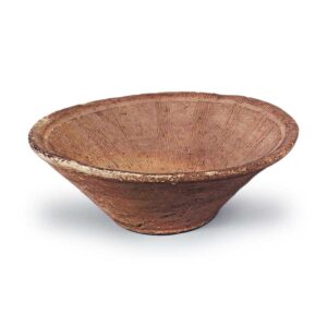 越前砂浆 日本越前砂浆 X Facebook Hatena Bookmark LINE Pinterest 复制 2025.03.11 越前砂浆 16 世纪。高 11.5 厘米,口直径 33.0 厘米,底直径 13.5-14.0 厘米。福井县立陶瓷博物馆 这是一件典型的室町时代末期的钵。 平底、浅敞口的器身内表面有 18 道使用八折梳的放射状格纹。 它的烧制略显不足,呈浅棕色。 口内表面的粗凹线也是这一时期的特征。