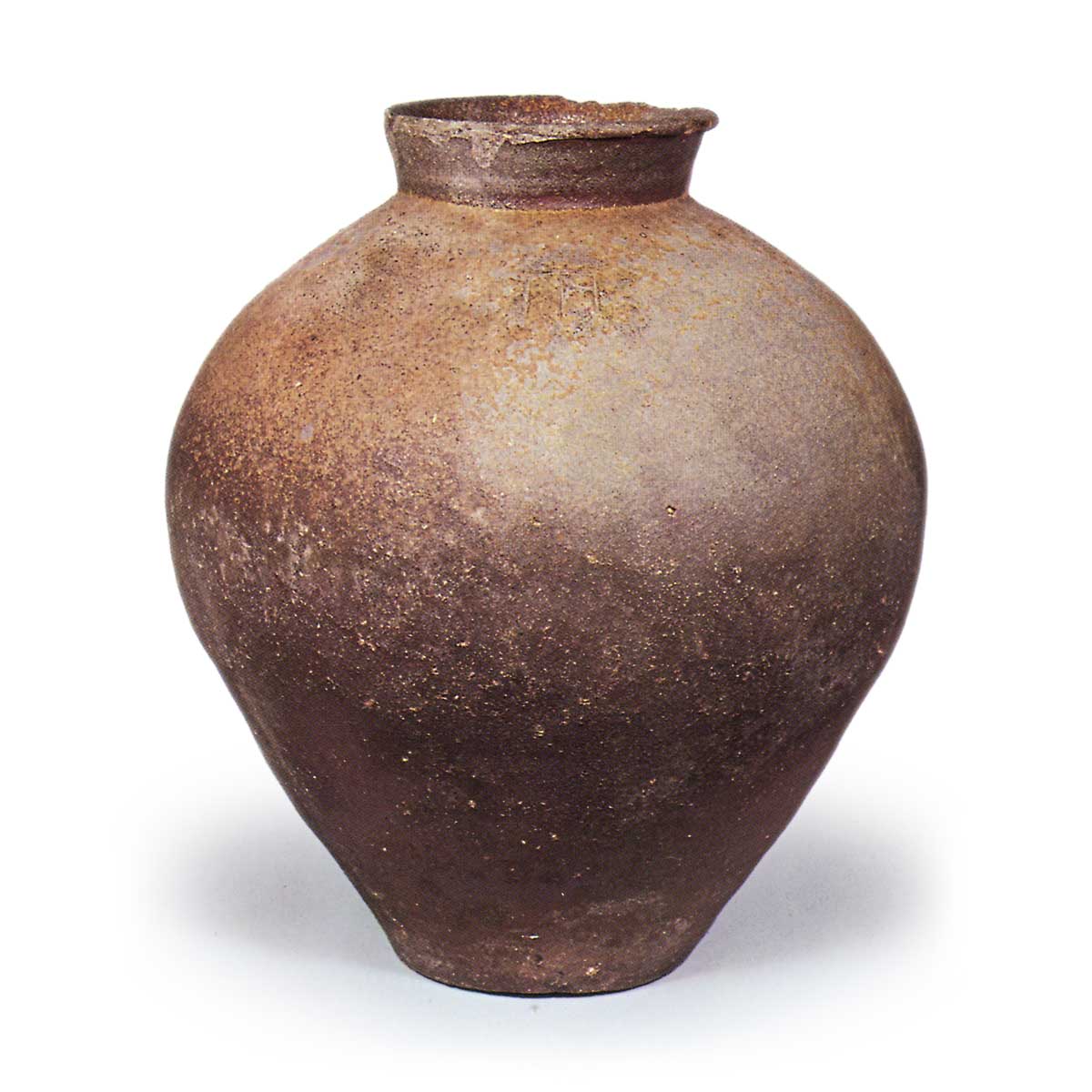 越前壶 日本越前壶 X Facebook Hatena Bookmark LINE Pinterest 复制 2025.04.01 越前壶 15 世纪。高 49.3 厘米、口径 16.0 厘米、身径 39.7 厘米、底径 16.0 厘米。 口部直立的颈部微微向外张开,向外呈圆形折叠,肩部向下脱落,靠近器身中心弯曲。 它由卵石山泥制成,呈棕褐色,肩部施黄绿色天然釉。 肩部有窑痕。