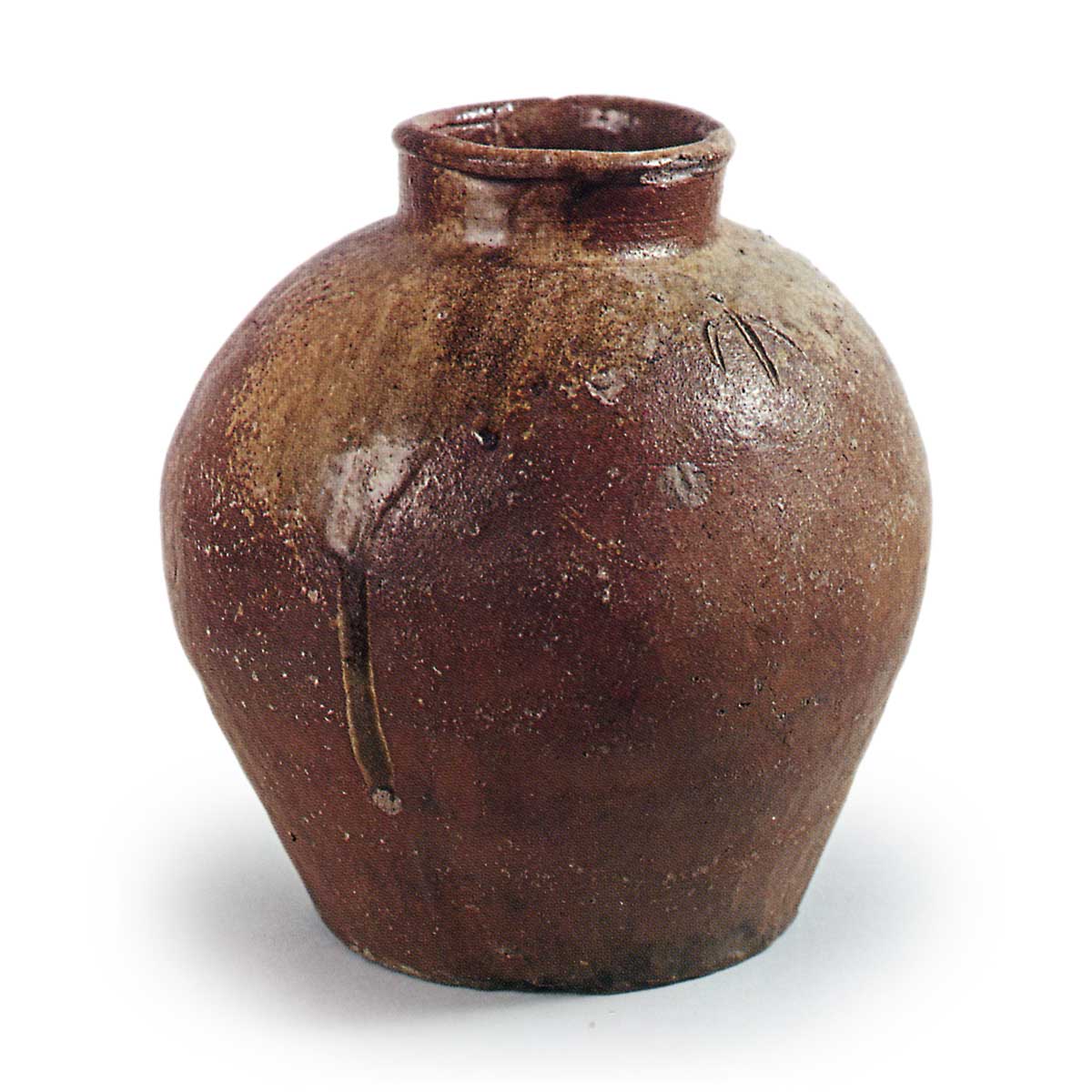 越前壶 日本越前壶 X Facebook Hatena Bookmark LINE Pinterest 复制 2025.04.01 越前壶 16 世纪。高 27.7 厘米,口径 11.3 厘米,身径 26.0 厘米,底径 16.4 厘米。 该花瓶的颈部短而直立,上缘折回形成球形圈足,这在越前陶器中十分罕见。 圆身和宽底的形状表明它的年代为室町时代末期。 它使用略带沙质的粘土烧制而成,肩部施有深绿色的天然釉。 肩部有窑痕。