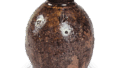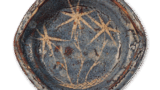 越前牙齿黑锅 日本越前牙齿黑锅 2025.04.01 越前牙齿黑锅 16 世纪。高 11.3 厘米、口径 5.4 厘米、身径 10.0 厘米、底径 6.4 厘米。福井县立陶瓷博物馆 从略粗的直立颈部和圆润的壶身形状来看,这件陶器应该是桃山时代早期制作的。 陶土质地细腻,是这一时期的典型陶土,红褐色烧制得很好,从口颈到半身都施有自然釉。 口沿有一部分已经断裂,因此不清楚它原来是否有口沿。 肩部有一道浓密的窑痕+。