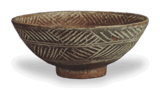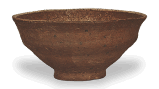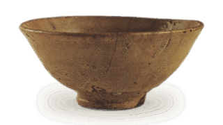 从照片中可以看到,碗的表面呈黄色。这是因为釉和釉料的质量都不高,但这与深色的釉下颜色相得益彰。通常情况下,这种类型的阿难碗在足环内会填满铁砂,但这个碗没有。 茶道大师认为没有铁砂是件好事,从这个意义上说,可以说这是一等一的茶碗。