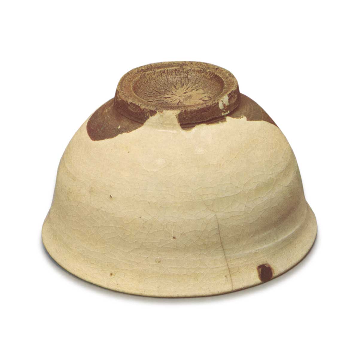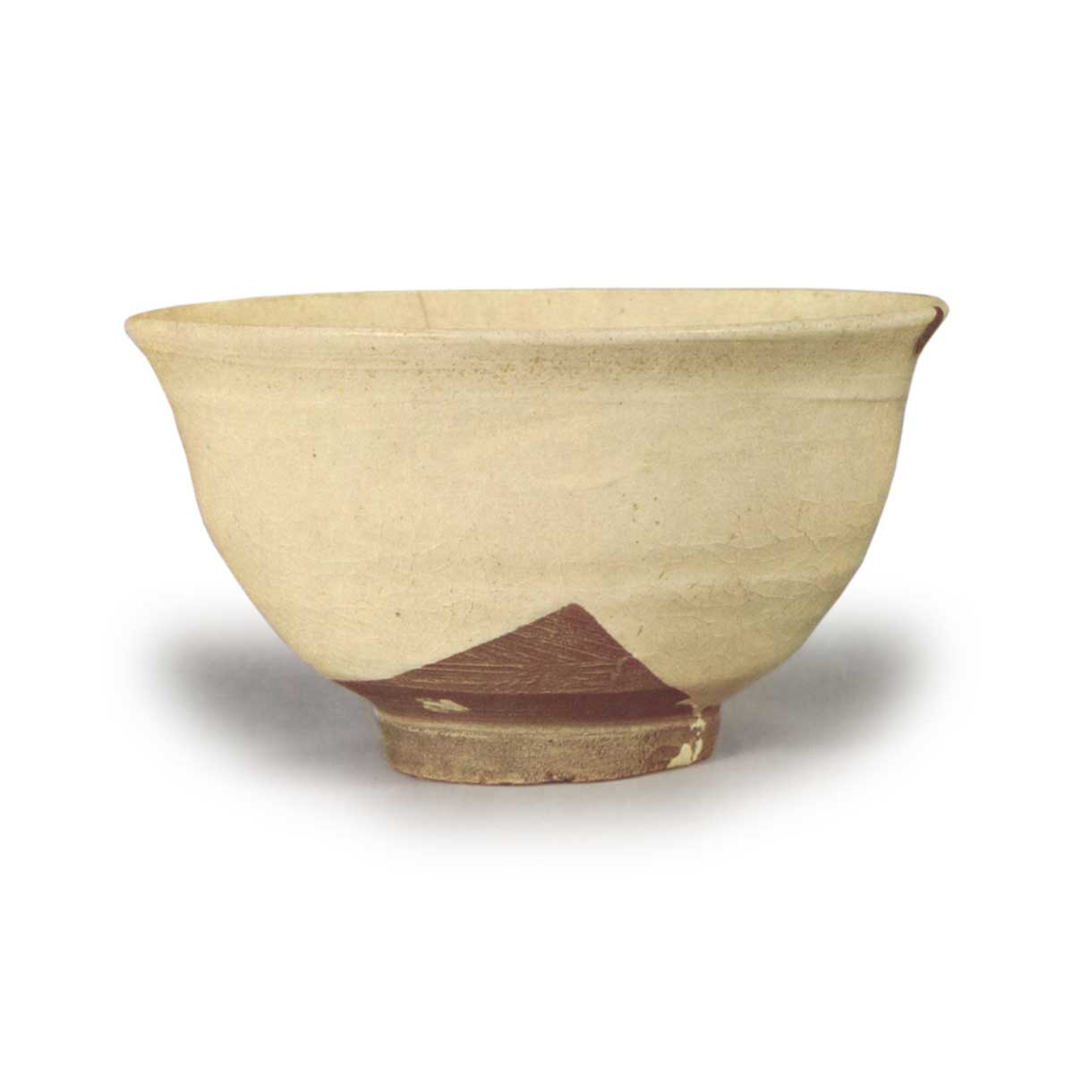 此茶碗被称为“玉子手”或“和手”(やわちかで)。朝鲜传入的釉面茶碗,在江户时代的茶人手中,常被赋予极具感性的名称。如“染付云堂手”或“黄瀬戸”等,皆属此类。其白色釉面带黄,形似蛋清,故得此名。 获得此茶碗的松平不昧公在盒盖上题写了“和手”。这或许是因为釉色显得格外柔和,但更可能是出于与“坚手”相对的意识。