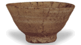 坚手的茶碗通常釉面不至高台,但此茶碗例外,从叠付处至高台内几乎全面施釉。高台如约定般以竹节造型力道十足,高台内侧的刮痕从兜巾处放射出绉纹,釉面在此处扭曲聚集,形成所谓的“椎茸高台”形态。 从高台侧面到腰部之间的削痕粗犷,由于陶土的扭曲,釉面也随之变化,呈现出一种独特的鳞片状纹理,进一步突出了这只茶碗的趣味性。