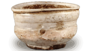 与老僧或六地藏所用的深口茶碗相比,此为广口平底的古井户形茶碗。 色泽淡雅如枇杷色,显得清新明亮,令人联想到明亮的宇治乡里。然而,外缘逐渐显现的轮廓纹路颇具难度,与拨形外张的竹节高台的雄劲造型相得益彰。釉层较厚且均匀,可能因含长石较多,整体呈现出白浊的质感。 土与釉的融合较为自然,釉裂纹的分布平和,因此没有出现严重的漆黑或漏釉现象,整体呈现出沉稳的枇杷色调。高台侧面与高台内侧,釉面如约定般开裂形成釉花,透过釉面可见底土的红色焦痕,更增添了一份韵味。