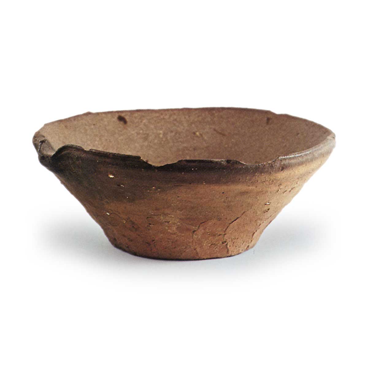 加贺砂浆 容器加贺砂浆 2025.05.12 加贺砂浆 石川县能美郡辰之口町长滝经塚出土14世纪高度8.3厘米,口径20.5~21.6厘米,底径10.5厘米该器物出土于长滝经塚,曾作为珠洲四耳壶的盖子使用。烧制略显不足,呈现淡褐色火色,口部边缘有黑色斑点。底部侧缘采用粗犷的刮削整形工艺。平底,底部有木屐印。这是加贺古陶中极为罕见的完整擂碗器物。