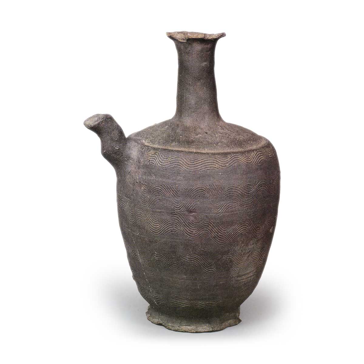 遗憾的是,上部的注口部分缺失,但作为珠洲烧的净瓶,这是目前已知唯一的作品。平安时代的瓷器中可见大量净瓶,但中世陶器中已绝迹,此处亦可见珠洲烧的独特性。