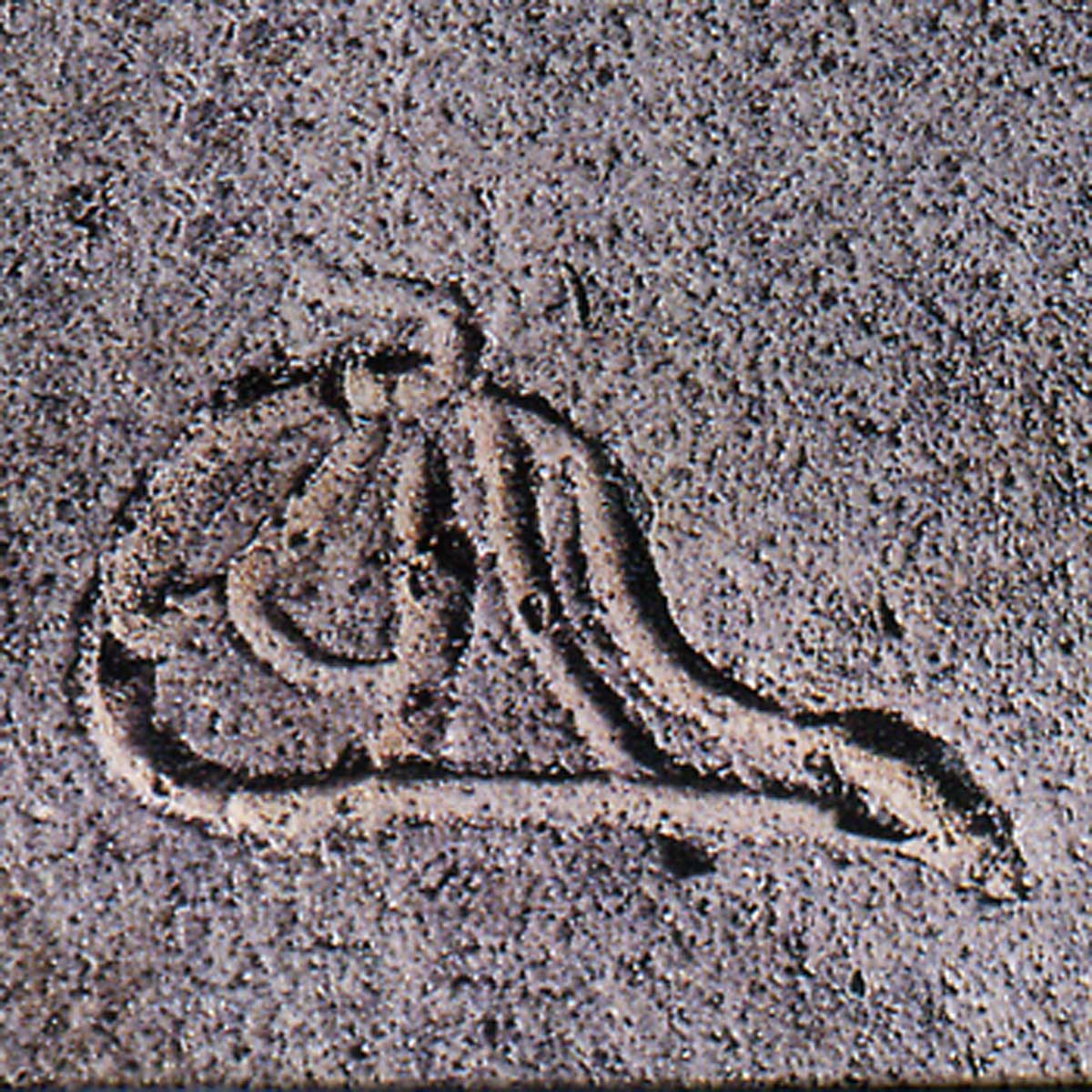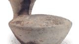 真言宗岩仓寺的传世品,据说最近一直被用作茶壶,以前还曾用来酿酒。这确实是一个气势恢宏的大壶。短小的口颈部、口缘边缘的圆润感、肩部的强烈张力、粗壮的壶身与较小的底部,这些特征表明这件大壶是镰仓中期(1185-1333年)的作品。 采用绳纹技法制作底部,通过横向抚平形成底部较小的杵臼状,其上再以绳纹接续成形,器面经敲打后以削磨调整,烧制紧密,呈现灰黑色。肩部部分残留有淡绿色自然釉。肩部以篆书描绘人物坐像,可能是佛像的表現。