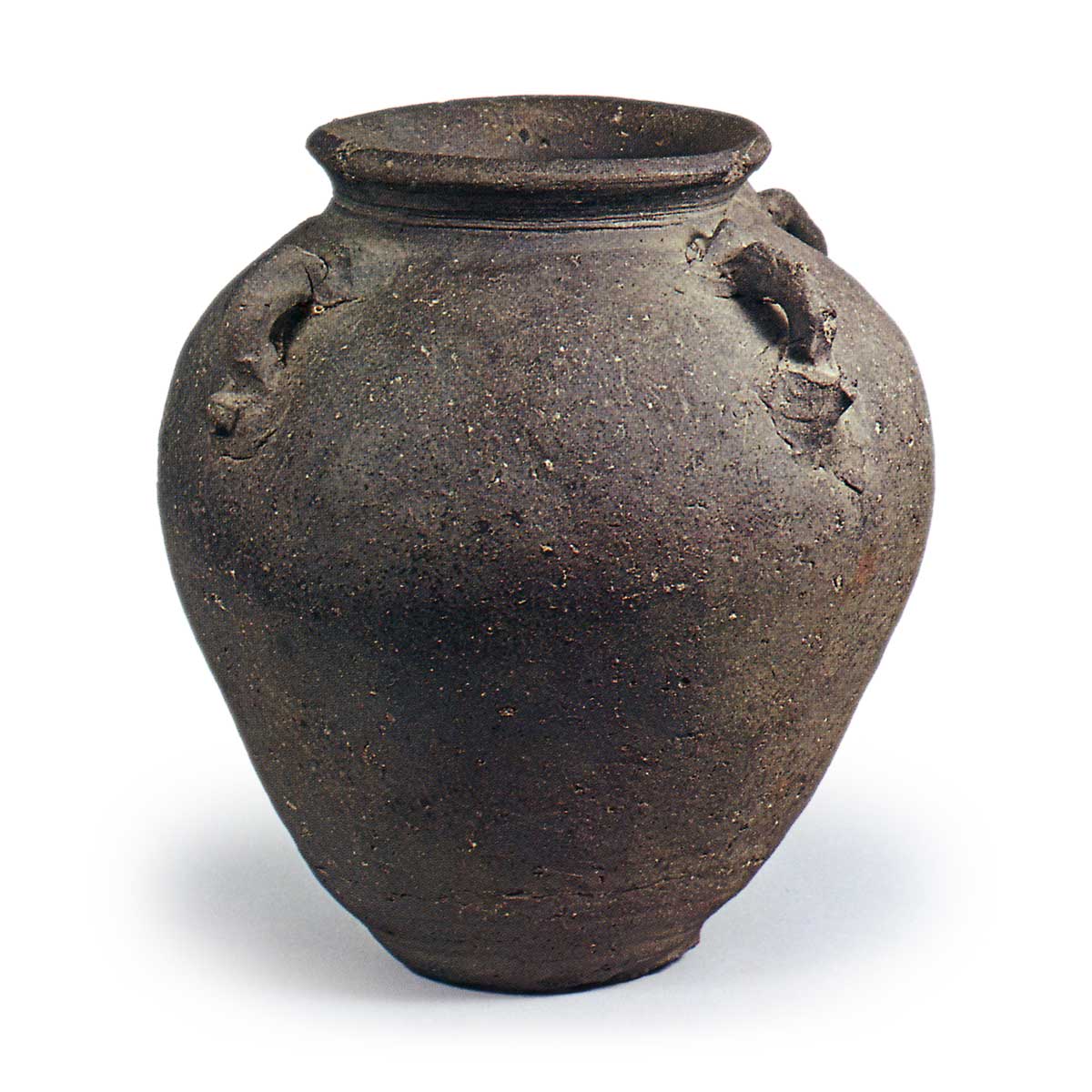 珠洲四耳壺 日本珠洲四耳壺 2025.05.14 珠洲四耳壺 14世纪高度31.0厘米 口径14.5厘米 胴径27.4厘米 底径10.5厘米在珠洲烧中,最具特色的花瓶莫过于两端向上卷曲的环形耳环四耳花瓶。该器物采用略带粗糙的泥土制成,通过绳土成型技法卷制而成,厚度整体较为均匀。尽管口径相对较大,但肩部线条较为平缓,其制作年代应可追溯至镰仓末期。