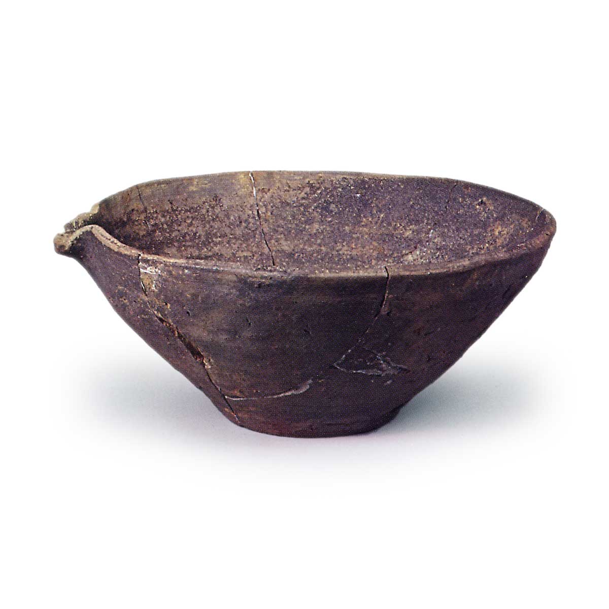 珠洲擂鉢 容器珠洲擂鉢 2025.05.14 珠洲擂鉢 13 世纪。高 14.3 厘米,口直径 31.5 厘米,底直径 11.0 厘米。石川县历史博物馆口沿略微向外倾斜。 它是由卷边粘土制成的,部分口沿被折叠成单面口。 碗底还有线切割的痕迹。 器物经过烧制,因烟熏而呈灰黑色。 根据口沿带和内表面没有篦痕的事实,其生产日期可推定为镰仓时代早期。