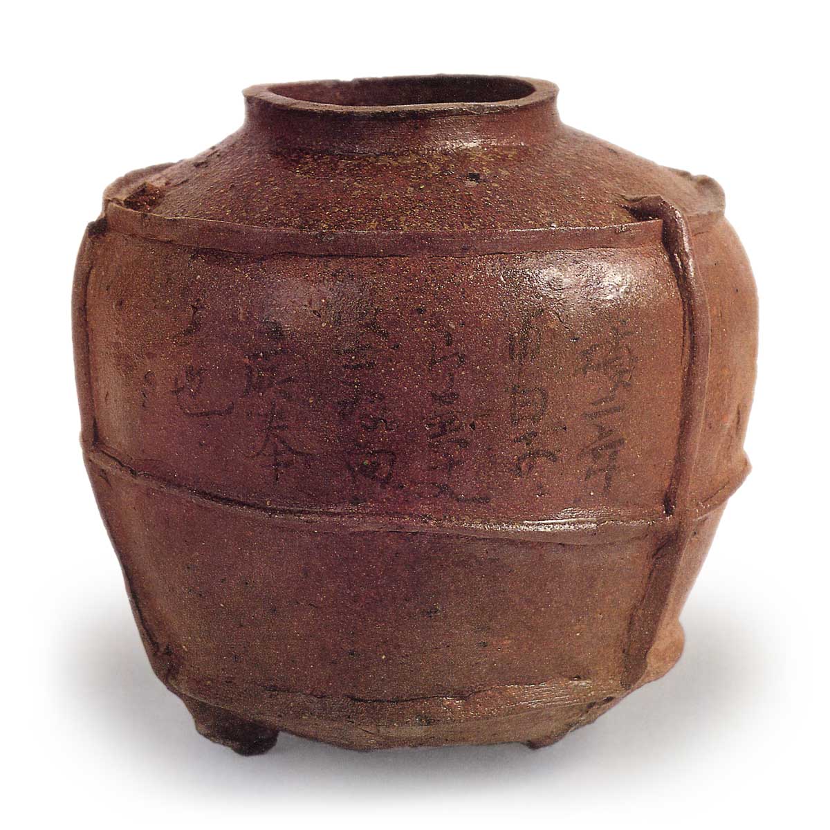 伊勢三足壺 日本伊勢三足壺 2025.05.16 伊勢三足壺 三重县铃鹿市稻生町伊奈富神社传世嘉祆二年(1236)铭高度17.5厘米,口径8.9厘米,胴径19.2厘米这件传世于伊奈富神社的陶罐,其烧制地至今尚不明确。从形态上看,应属于平安后期灰釉四足壶的流派,但中世纪东海地区的瀬戸、常滑等窑场已绝迹。 或许是传说中的伊勢窑产品。伊奈富神社西侧的丘陵地带是伊勢地区最大的古坟时代须恵器窑址群分布区域,奈良至平安时代与邻近的德居古窑址群相连。从窑业生产的历史来看,该地区附近可能存在未被发现的中世纪窑址。壶身以墨书题记嘉禎二年 内田 白子八郎兼文