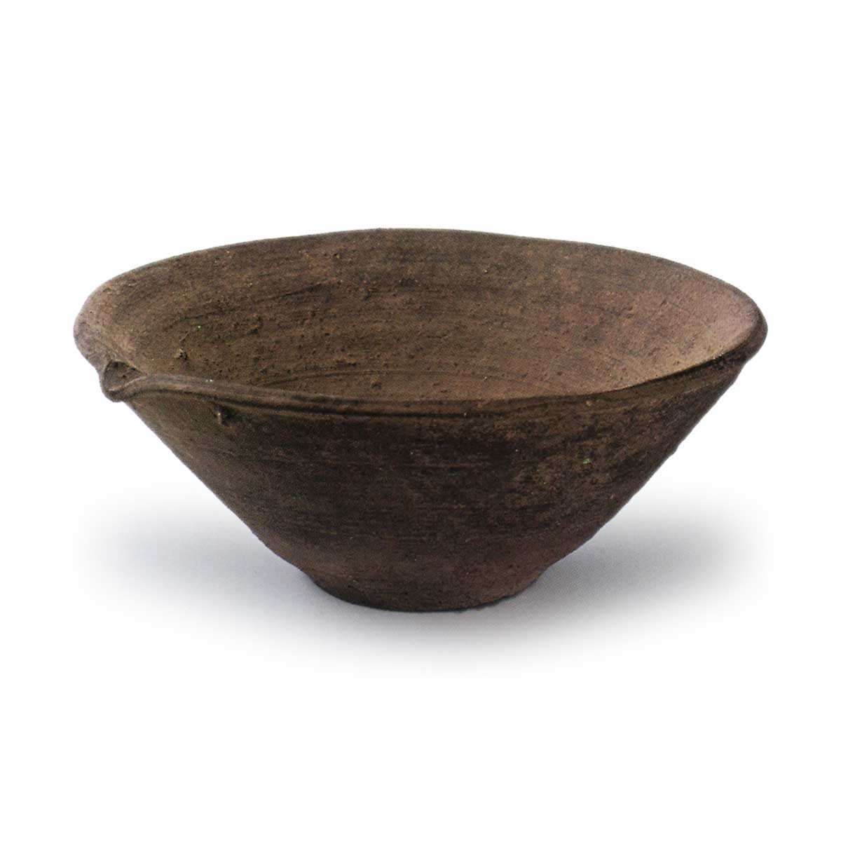 飯坂擂鉢 日本飯坂擂鉢 X Facebook Hatena Bookmark LINE Pinterest 复制 2025.05.16 飯坂擂鉢 福岛市饭坂町毘沙门平古窑出土13世纪高度10.6厘米 口径26.2厘米 底径8.8厘米福岛市教育委员会这是中世纪陶器中常见的平鉢形擂鉢。采用含有长石颗粒的砂质陶土,以左旋轆轤成型。 底部侧缘采用篾削技法,上部通过横向抚平调整器面。底面以线切技法形成平底。口缘端部略微折曲形成片口。器壁极为厚实,具有强烈的重量感。烧成效果良好,燻烧导致炭化现象显著,呈现黑褐色。作为饭坂窑擂鉢的完整器物,这是极为珍贵的资料。