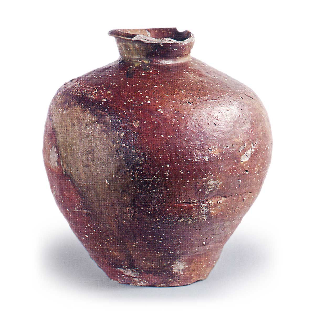 信楽壺 信楽備前丹波信楽壺 2025.05.19 信楽壺 14 世纪。高 37.2 厘米,口直径 14.5 厘米,身直径 34.0 厘米,底直径 15.5 厘米。此罐略有变形,肩部粗壮。 罐身弯曲成五段,清楚地表明了成型技术。 将绳索缠绕到一定宽度的制作方法清晰可见。 虽然有一些长石坑,但粘土致密,烧制良好,使器物呈棕褐色,表面光滑。 器身较薄,肩部至部分器身施深绿色天然釉。