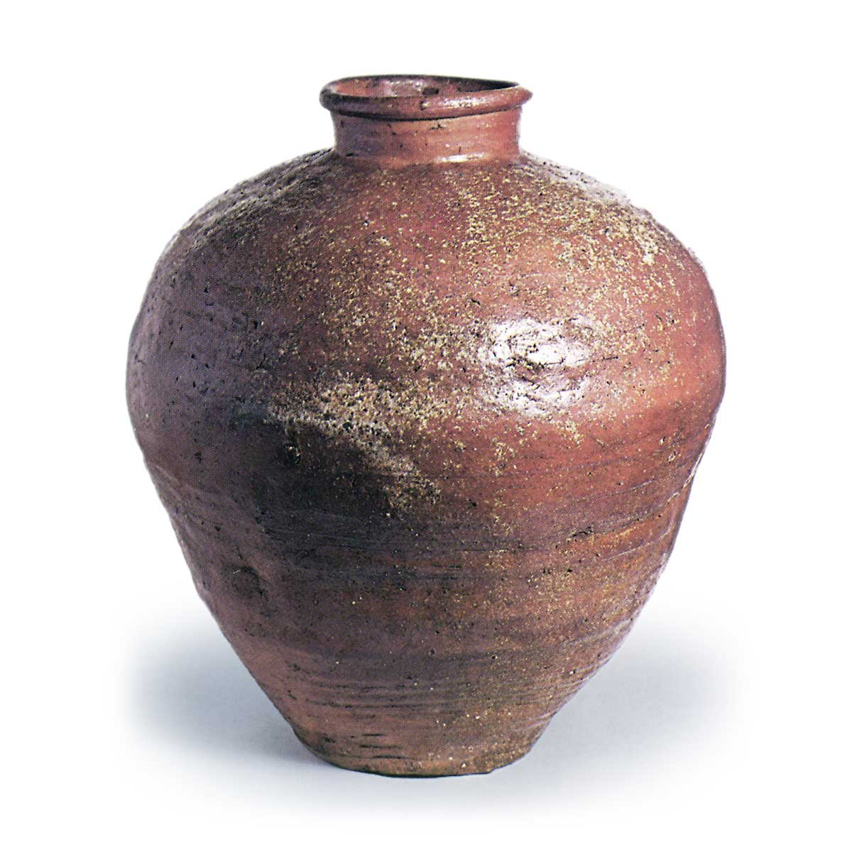 信楽壺 信楽備前丹波信楽壺 X Facebook Hatena Bookmark LINE Pinterest 复制 2025.05.19 信楽壺 16 世纪。高 53.2 厘米,口直径 16.8 厘米,身直径 47.1-47.8 厘米,底直径 19.3 厘米。本田收藏。虽然它的肩部还保留着一些张力,但从其小巧、直立的口部和颈部以及球形圈足尖端的形状来看,它应该是 16 世纪制作的。 它由绳状粘土制成,但在成型过程中有明显的轮抛褶皱。 器物烧制得非常好,表面呈红褐色光泽,肩部施黄绿色芝麻酱天然釉。 器身下半部有一些烧成裂纹,但这是一件精美的薄胎器。