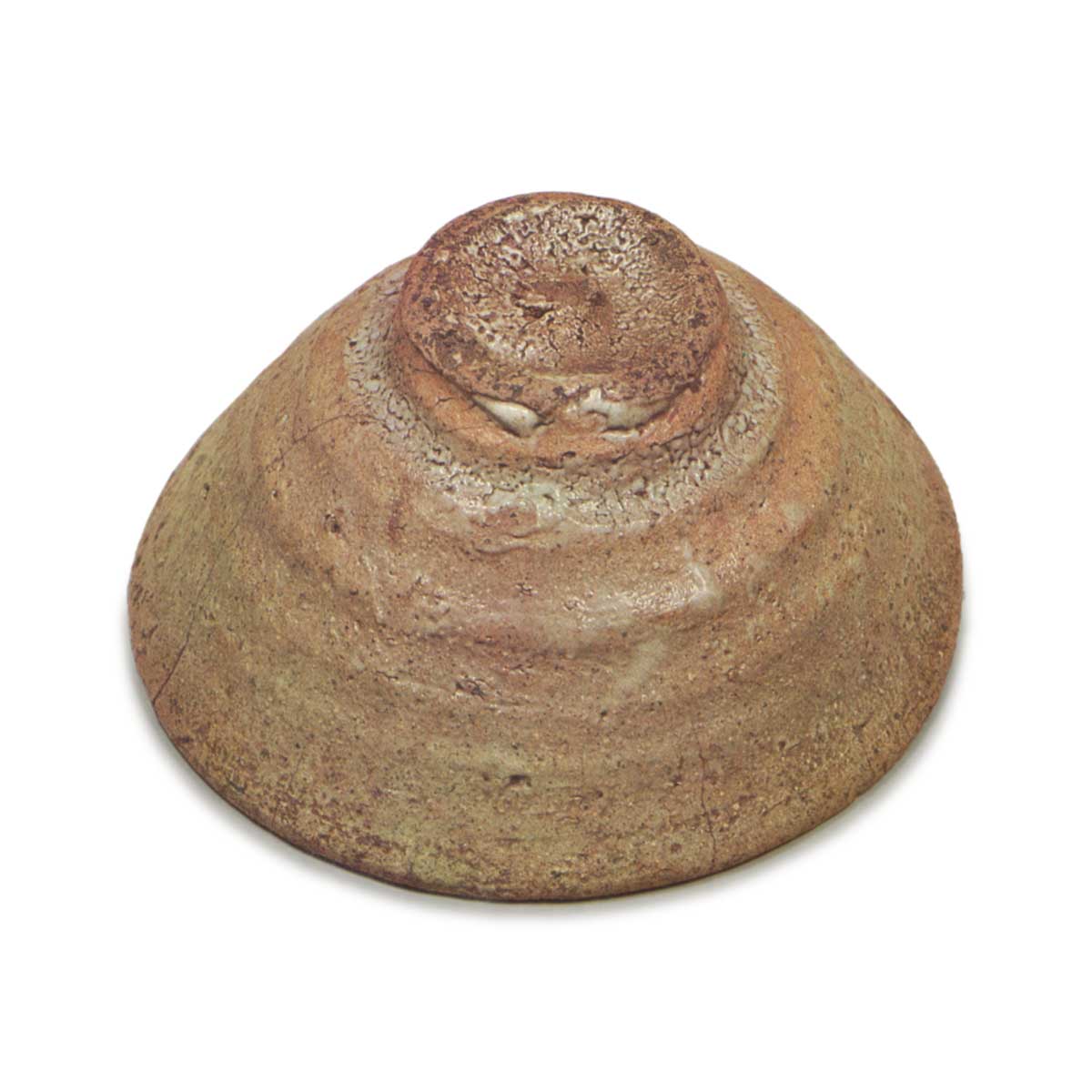 浅轆轤纹以数段缓和地延伸,高台侧的削痕也不深,高台虽高但呈圆角造型,与先隼的刚劲风格形成鲜明对比。 长石釉厚重,几乎遮盖了地土的黑色,呈现出明亮光滑的色泽。由于釉层较厚,釉面处可见气泡爆裂的痕迹,周围形成白色釉环礁,形成独特的景观。高台内外纹理细腻,兜巾高耸堂皇。 高台边缘处,有特别大颗的釉料聚集,形成极为奇妙的韵味。