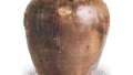 烧成坚实,器面呈赤褐色,肩部覆盖着黄绿色的自然釉,使这件壶更加突出。底部有下駄印。这是备前大壶中最为杰出的作品之一。