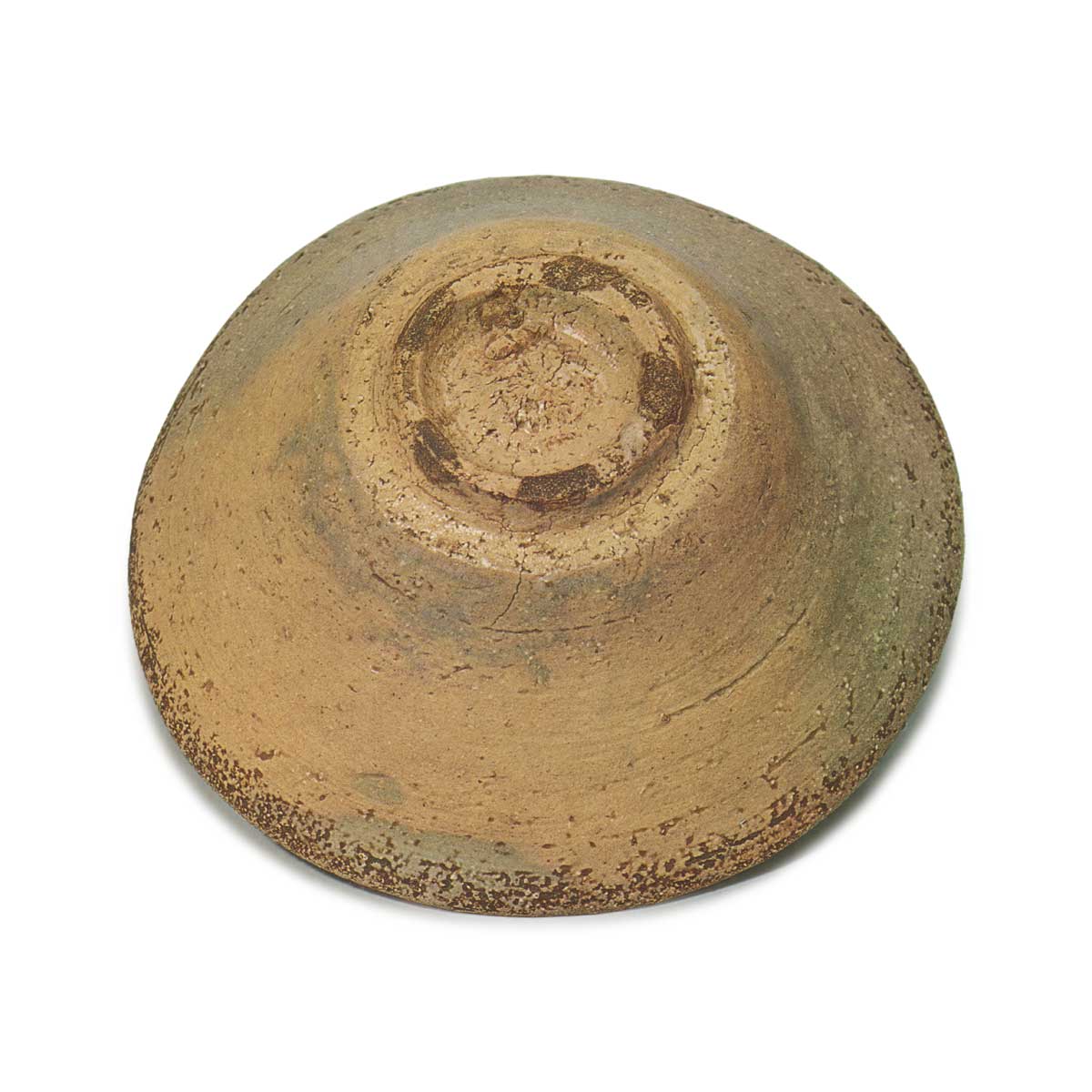 蕎麦碗多采用青井戸釉,因其形状类似井口而得名,故以“蕎麦”字为名。残月被誉为蕎麦碗中的翘楚。其造型独特,边缘略微内收,茶溜处宽广且呈一段凹陷,腰部有阶梯状设计。碗口开阔,碗底平浅。砂混的素地呈现片身替的纹理,彰显茶趣,碗口五道纹饰更添风情。高台无土露,畳付的痕迹亦成景观,粗犷的手感更添茶韵。