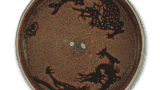 这是钉雕三碗之一,但其制作工艺的厚重感尤为突出。总体而言,钉雕工艺的制作手法颇具难度,即便在高丽茶碗中也堪称上乘。两彦的铭文表明,此物曾为大津两替屋彦兵卫所藏。 碗身细腻的纹理清晰可见,釉面青红相间,茶趣盎然。石花众多,高台边缘处有浓郁的玻璃釉,形成优美的景致。碗底呈茶洼涡状,鲜红夺目,有六个孔眼。高台宽大稳重,约东式钉雕装饰,充满豪放之气。钉雕名碗的作风极为相似,推测应为同一人所作。