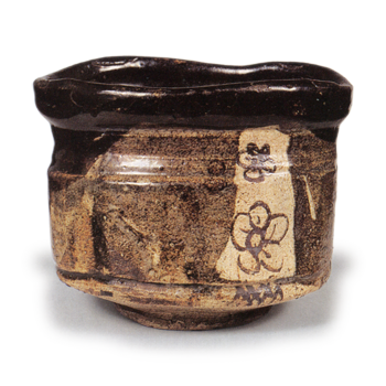 这是一款相当深的筒形茶碗,腰部外翻。边缘略微收紧,山峰造型有趣。未施箆目,无扭曲,作法朴素,却变化丰富。 高台为双层高台,釉面采用厚釉覆盖,三角形露出土色。