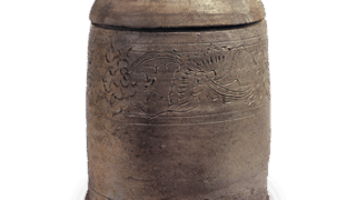 备前 沉线纹壶 信楽備前丹波备前 沉线纹壶 X Facebook Hatena Bookmark LINE Pinterest 复制 2025.06.29 备前 沉线纹壶 13世纪高度34.6厘米 口径15.6~17.0厘米 胴径27.8厘米 底径19.2厘米短直立的口缘端制成玉缘的壶,可能是作为种子壶使用的。采用略带砂质的陶土,以绳土卷制成型,壶身下半部纵向、上半部横向使用篾条整理器面,但整形不够精细。肩部随意刻有两条沉线。烧成后质地较软,烧成程度尚显还原,器面呈现灰色调。
