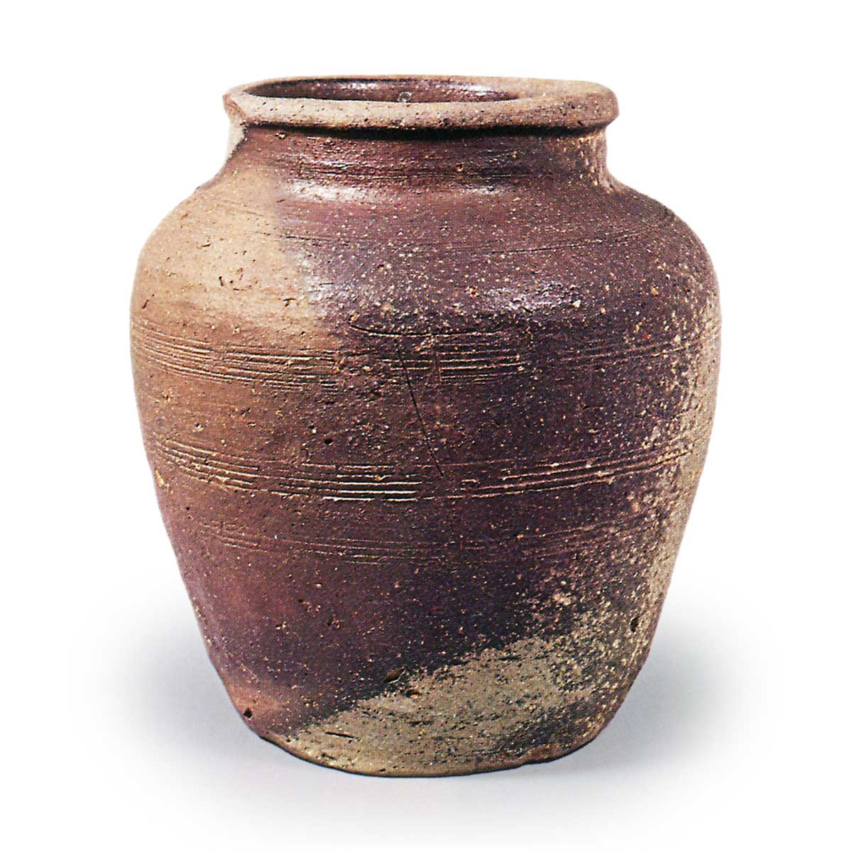 备前 梳目纹壶 信楽備前丹波备前 梳目纹壶 2025.06.30 备前 梳目纹壶 14世纪高度21.4厘米,口径13.4厘米,胴径20.2厘米,底径13.0厘米东京国立博物馆这是备前种壶的典型代表作。采用含有石英细粒的略粗陶土,以绳土卷起成型,轆轤收口,呈现相对薄壁且规整的造型。肩部有一条,胴部有三条梳齿凹线。烧成效果良好,半面呈茶褐色,半面呈黑褐色,自然釉部分剥落,露出灰色的素地。
