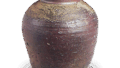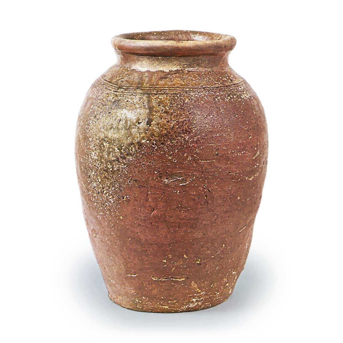 备前 櫛目纹壶 信楽備前丹波备前 櫛目纹壶 2025.06.30 备前 櫛目纹壶 15世纪高度31.8厘米 口径14.6厘米 胴径23.1厘米 底径15.0厘米玉缘的宽度为1.7厘米,与颈部的过渡自然流畅,这是新的趋势。肩部施以梳纹装饰,其形式化处理方式亦属15世纪后期的特征。采用绳土卷起成型技法,壶身以五段接合。烧制紧密,呈现茶褐色,肩部至壶身覆盖暗绿色自然釉,增添色彩层次。底面有下駄印。