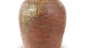 备前 梳目波纹纹壶 信楽備前丹波备前 梳目波纹纹壶 2025.06.30 备前 梳目波纹纹壶 16世纪高度31.3厘米 口径14.2厘米 胴径26.0厘米 底径16.2厘米冈山县立博物馆颈部较短,玉缘退化呈扁平状。器身肩部外展,底部宽大,上下直径差异较小,呈现室町末期风格。采用细密陶土以水拉轆轤成型,器面轆轤纹理清晰可见。烧成效果极佳,呈现赤褐色,但半面埋入灰中还原,呈现灰青色。其上覆盖有黄绿色自然釉,备前特有的丰富火色充分展现,堪称精品之一。