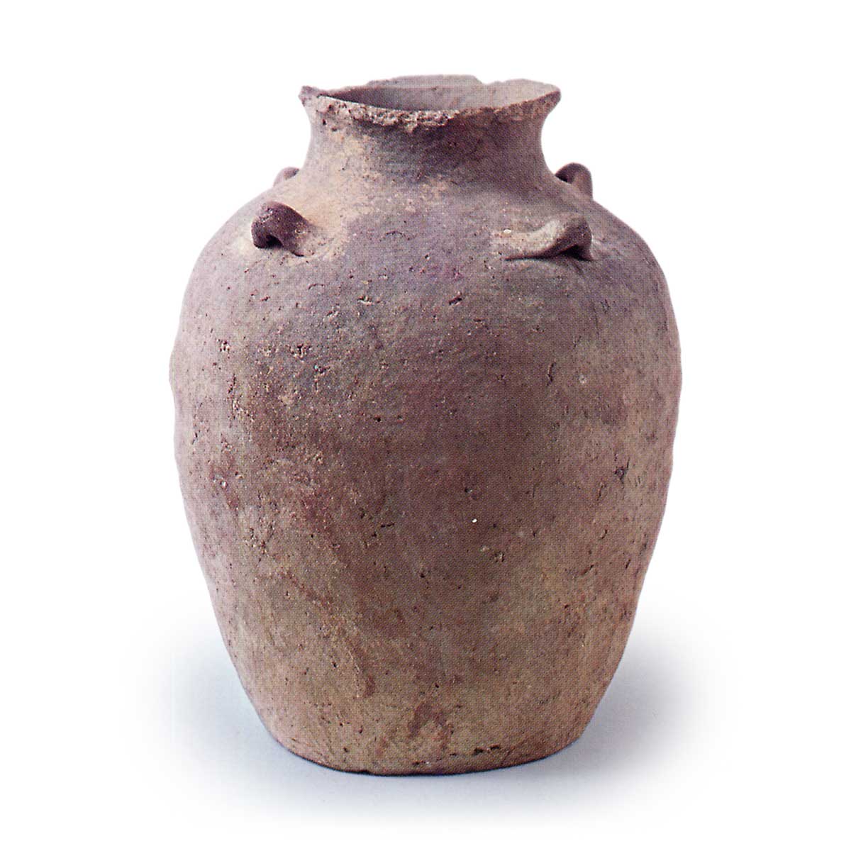 备前 四耳壶 信楽備前丹波备前 四耳壶 X Facebook Hatena Bookmark LINE Pinterest 复制 2025.07.01 备前 四耳壶 冈山县真庭市若代出土15世纪高度24.3厘米,口径9.2厘米,胴径18.9厘米,底径6.0厘米胜山町中央公民馆属于小型四耳壶系列,采用绳土卷起制作,口缘内侧带有台阶,呈圆口造型。肩部附有四个横耳。每个耳下方以箟描技法刻有一道刻线。采用含有石英细粒的粗质陶土烧制,烧成效果不佳。还原焰烧成呈现灰色,肩部可见少量灰釉覆盖,但未完全熔化。